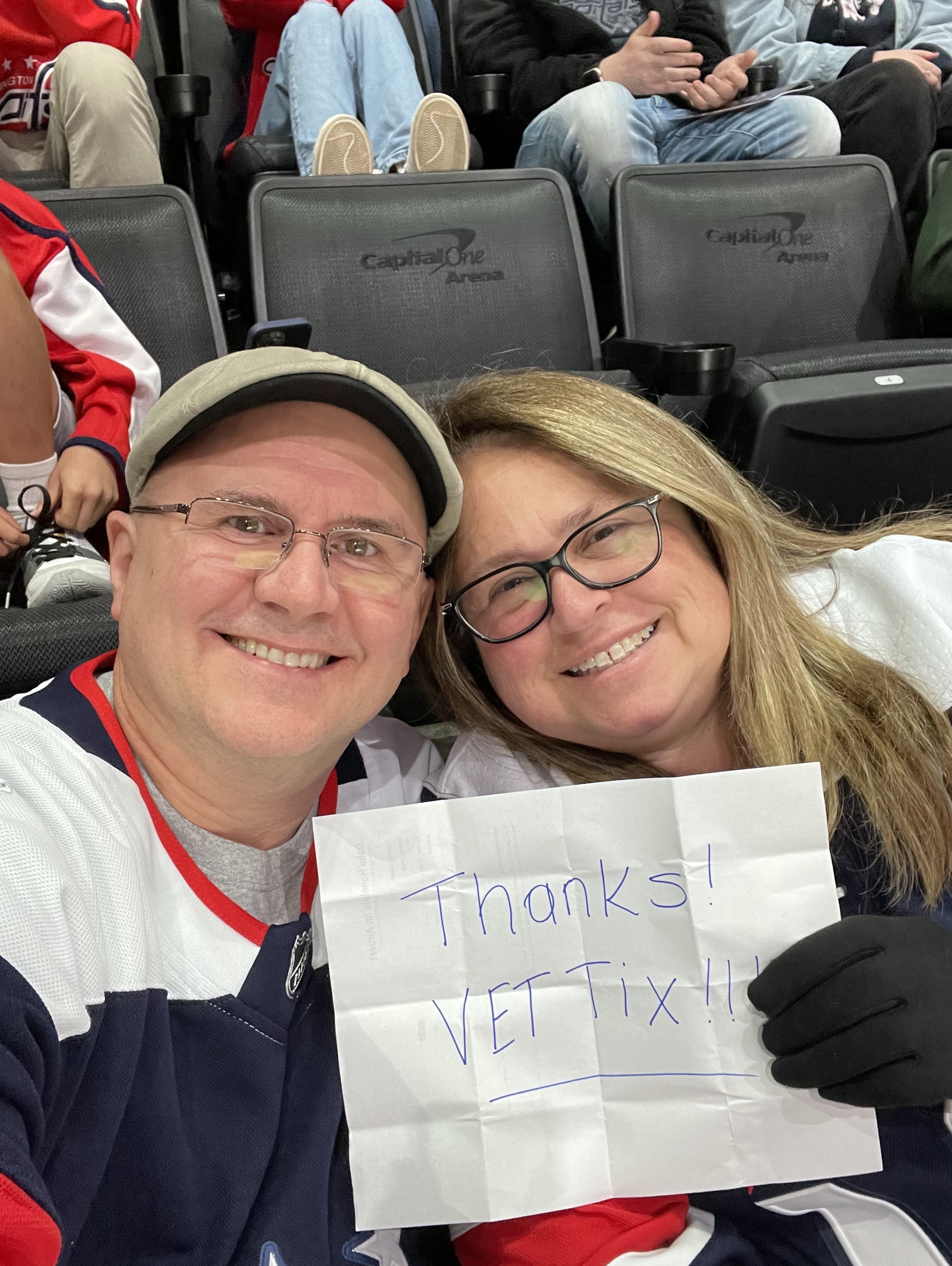 Thank you Monumental Sports and VetTix. What an exciting game. It was a thrill to see the Caps win in a shoot off. Our seats were fantastic too.