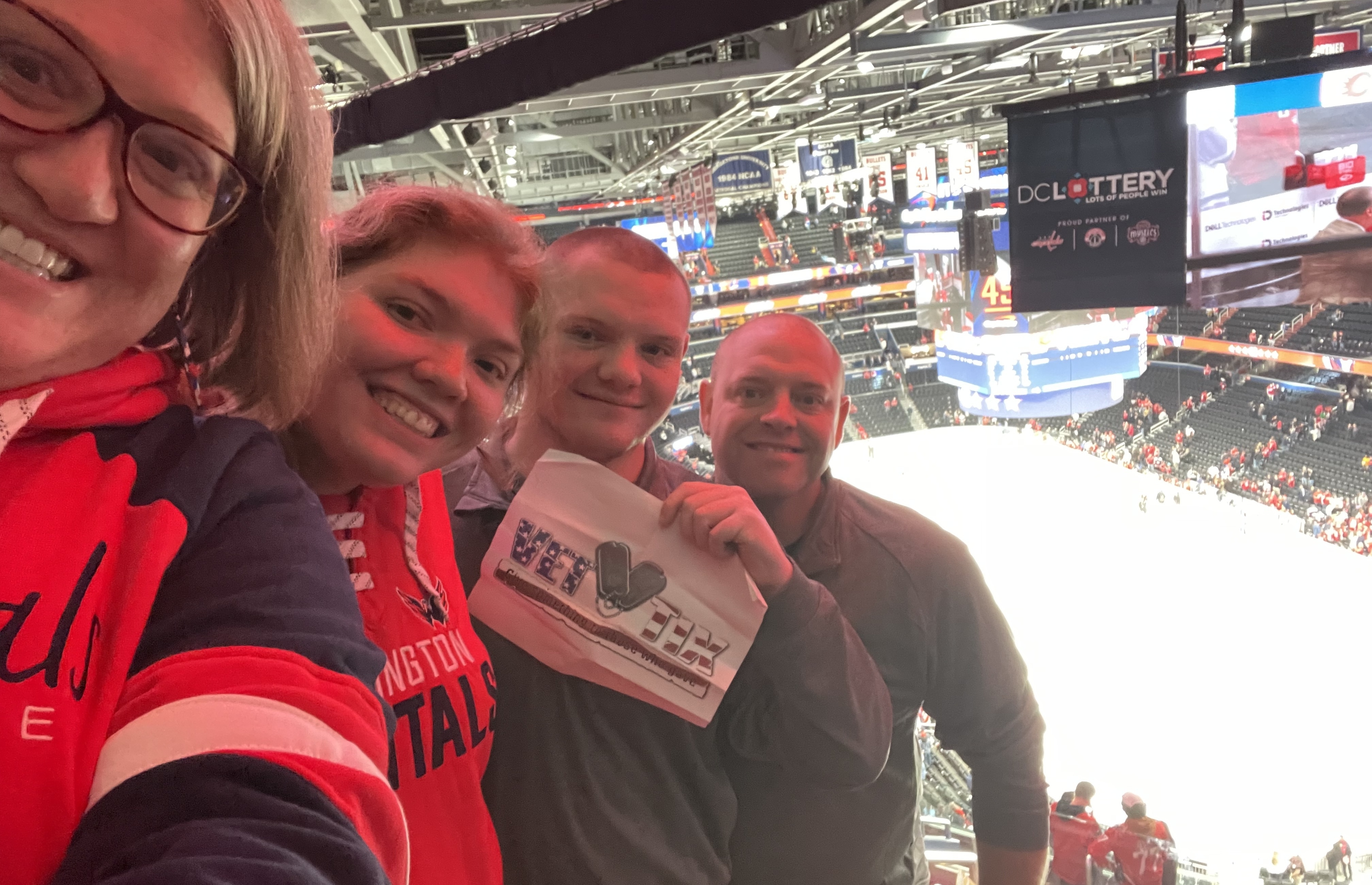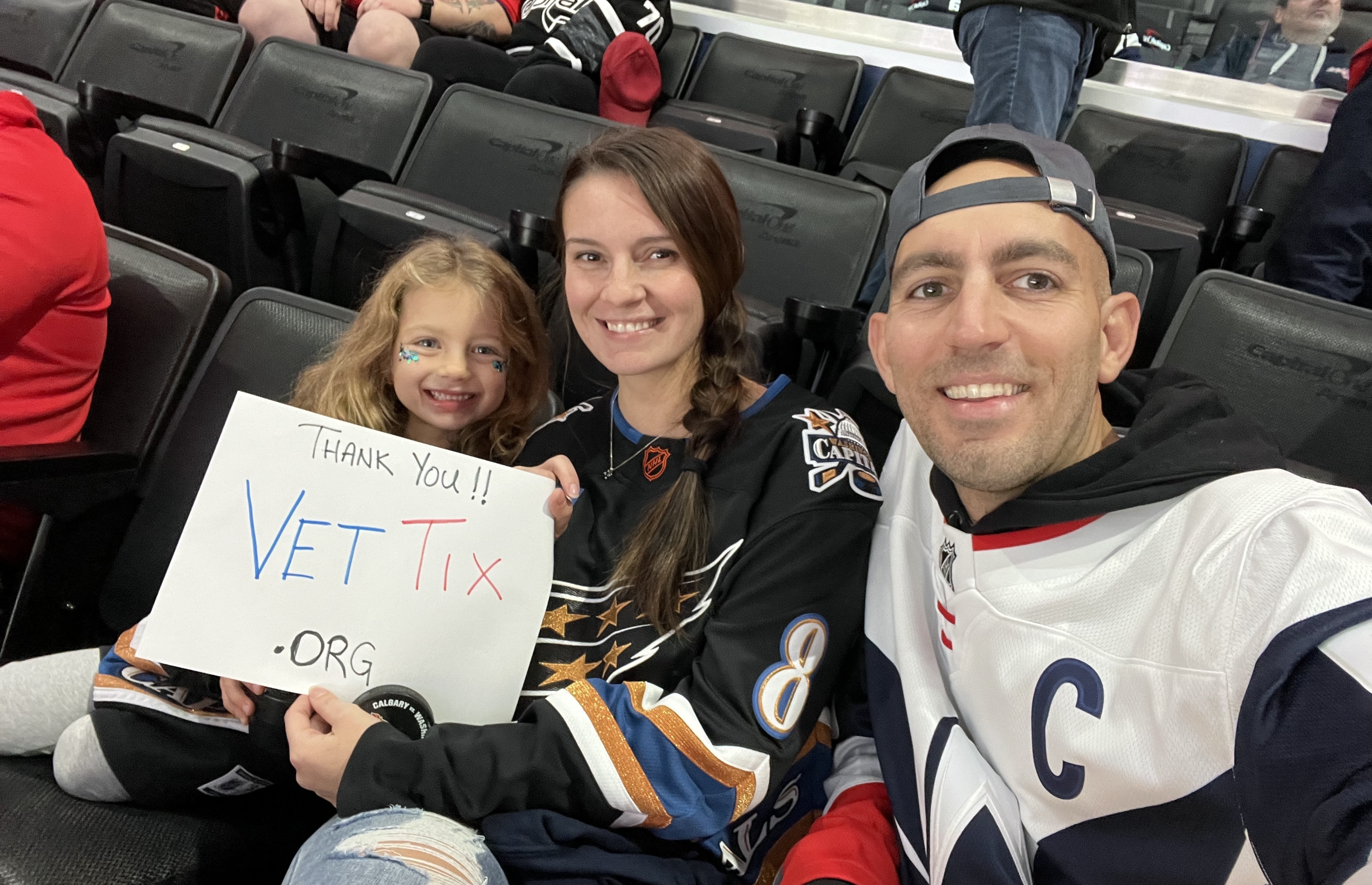 Thank you so much for the tickets to see the Capitals. My family is huge hockey fans and just moved to DC. My daughter has been begging to go see the Capitals play. We cannot thank you enough for the tickets so we could take her. Thank you so much for all you do for the troops and their families!