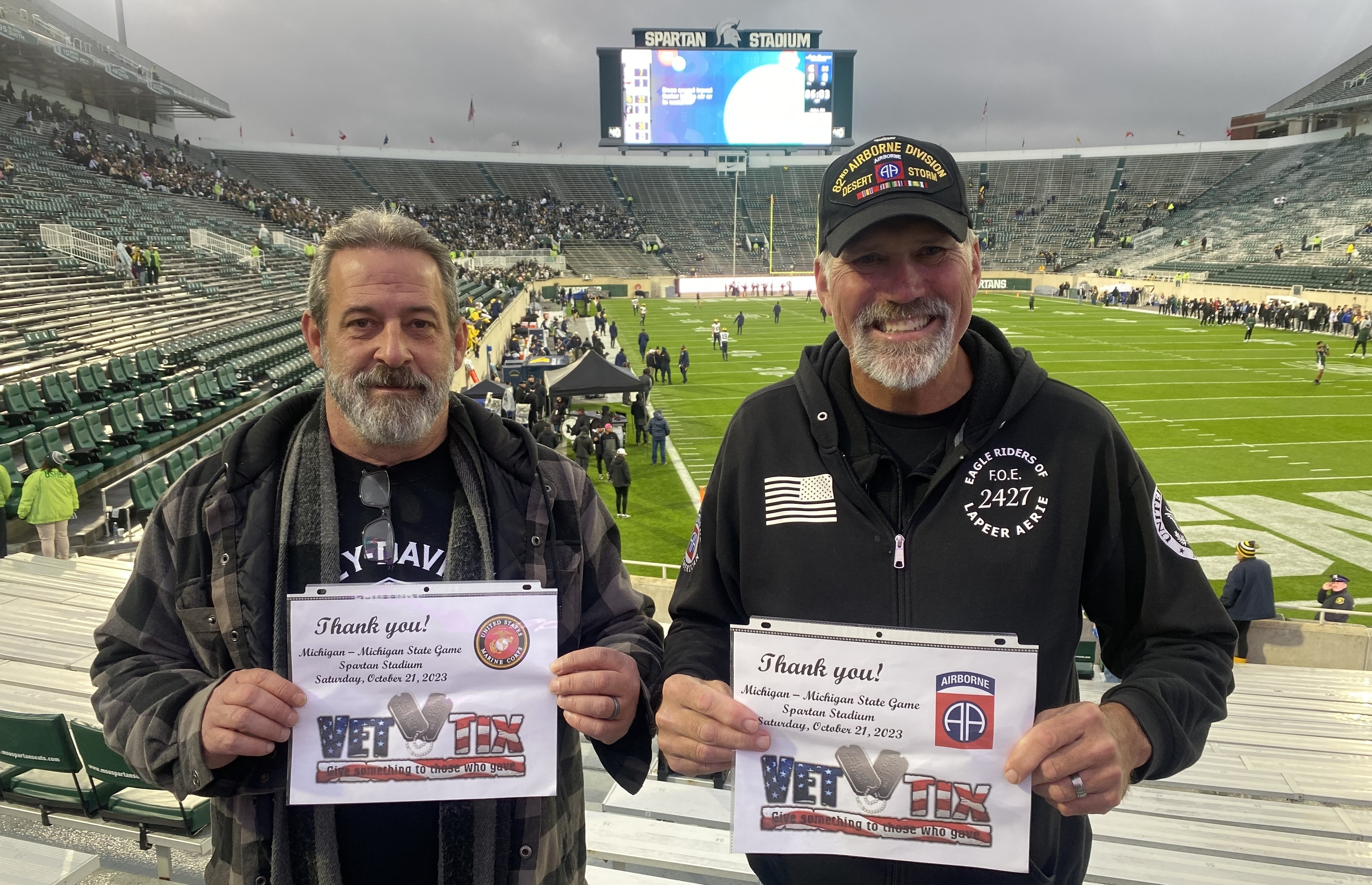A once in a lifetime chance to see the University of Michigan vs. Michigan State play. Thank you to VetTix and most of all thank you sponsors!!!