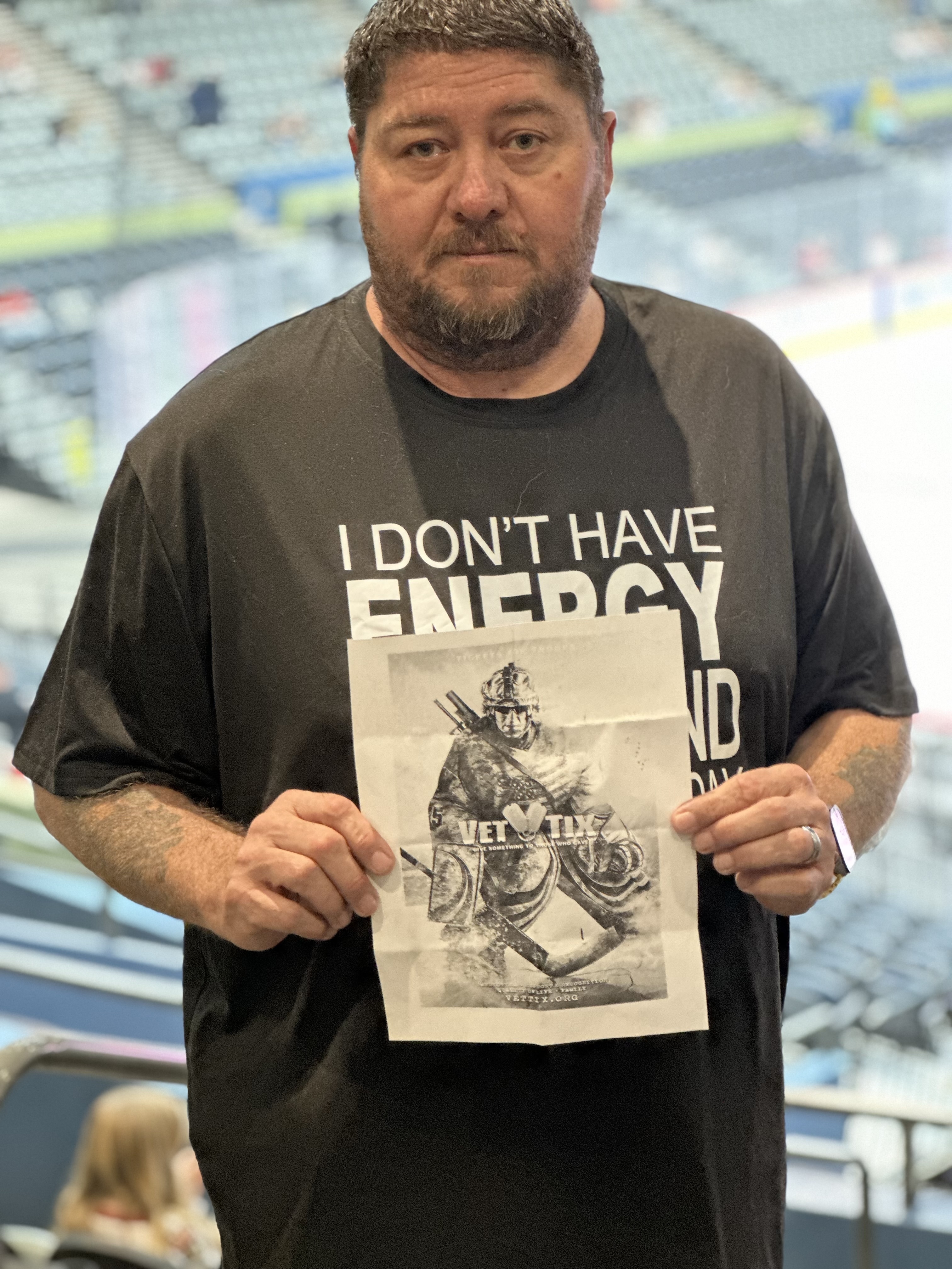 Thank you Tucson Roadrunners and VetTix. We had a wonderful time at the hockey game and wish I could go again but you have Flags on my account. I'm wearing a VetTix hat.