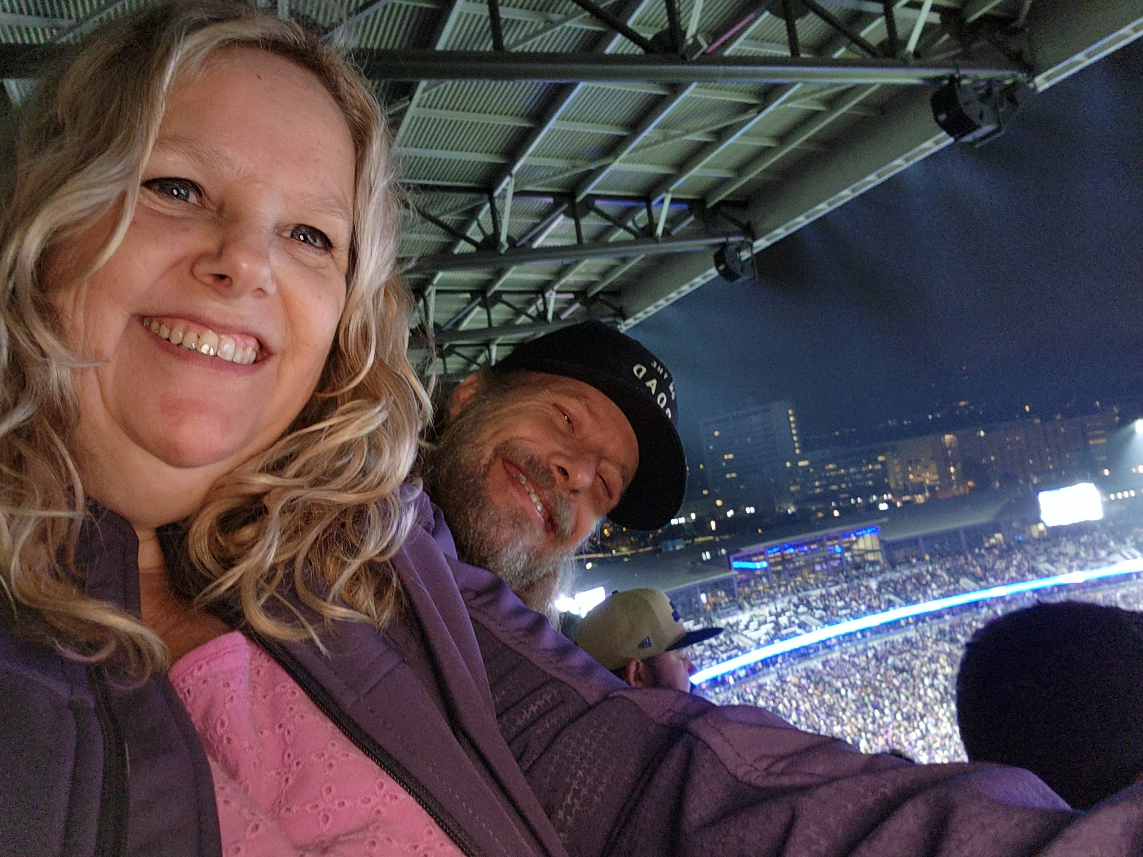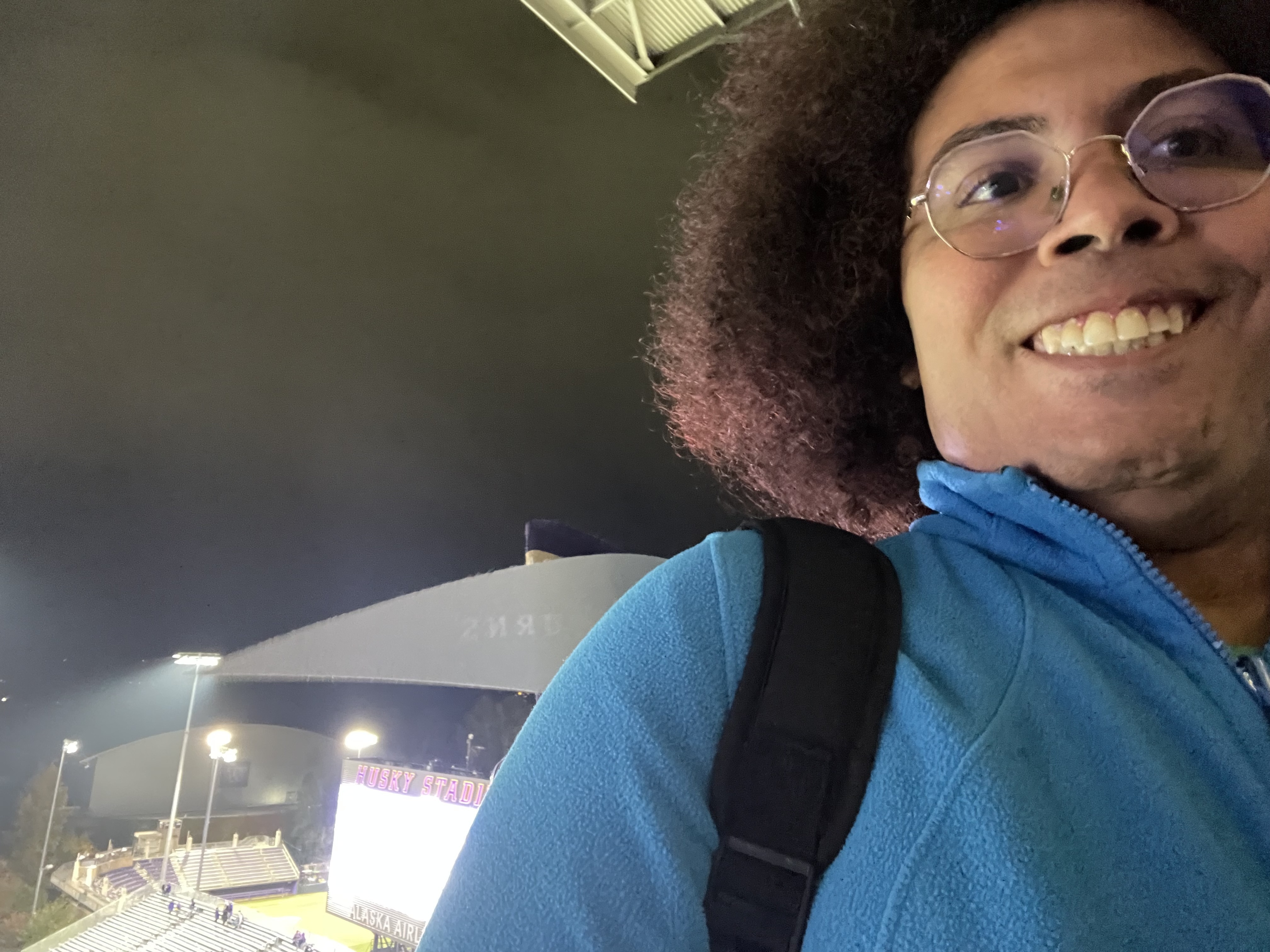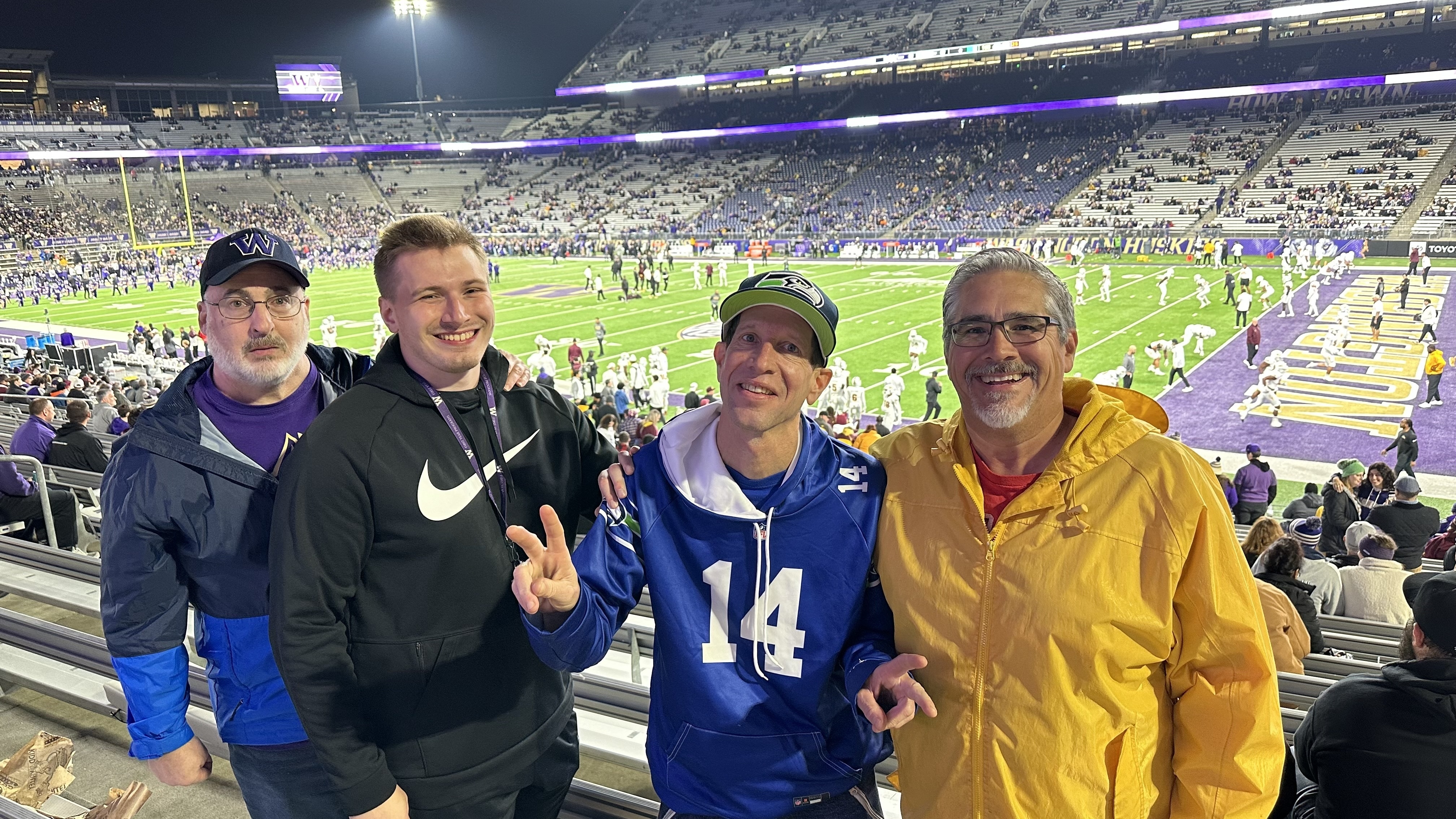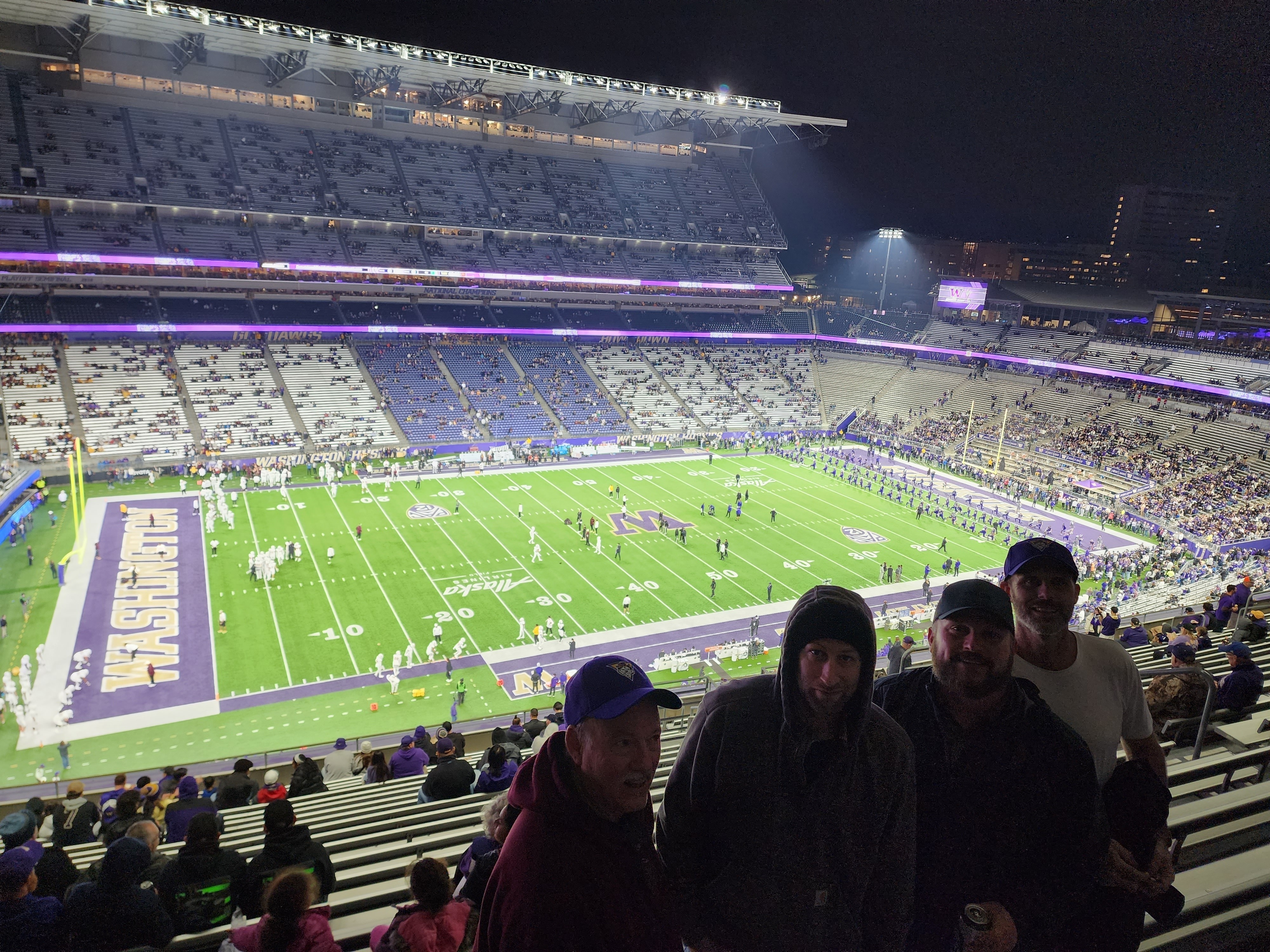 Thanks again to WU Huskies and Vet Tix. The visiting team kept it closer than expected, but so exciting when the defense pulled a pick 6 and secured the victory. 2nd time at a WU game and a great show both times. The night game is especially fun with Purple Reign and all the purple lights. What a blast !!! Thanks again 😀