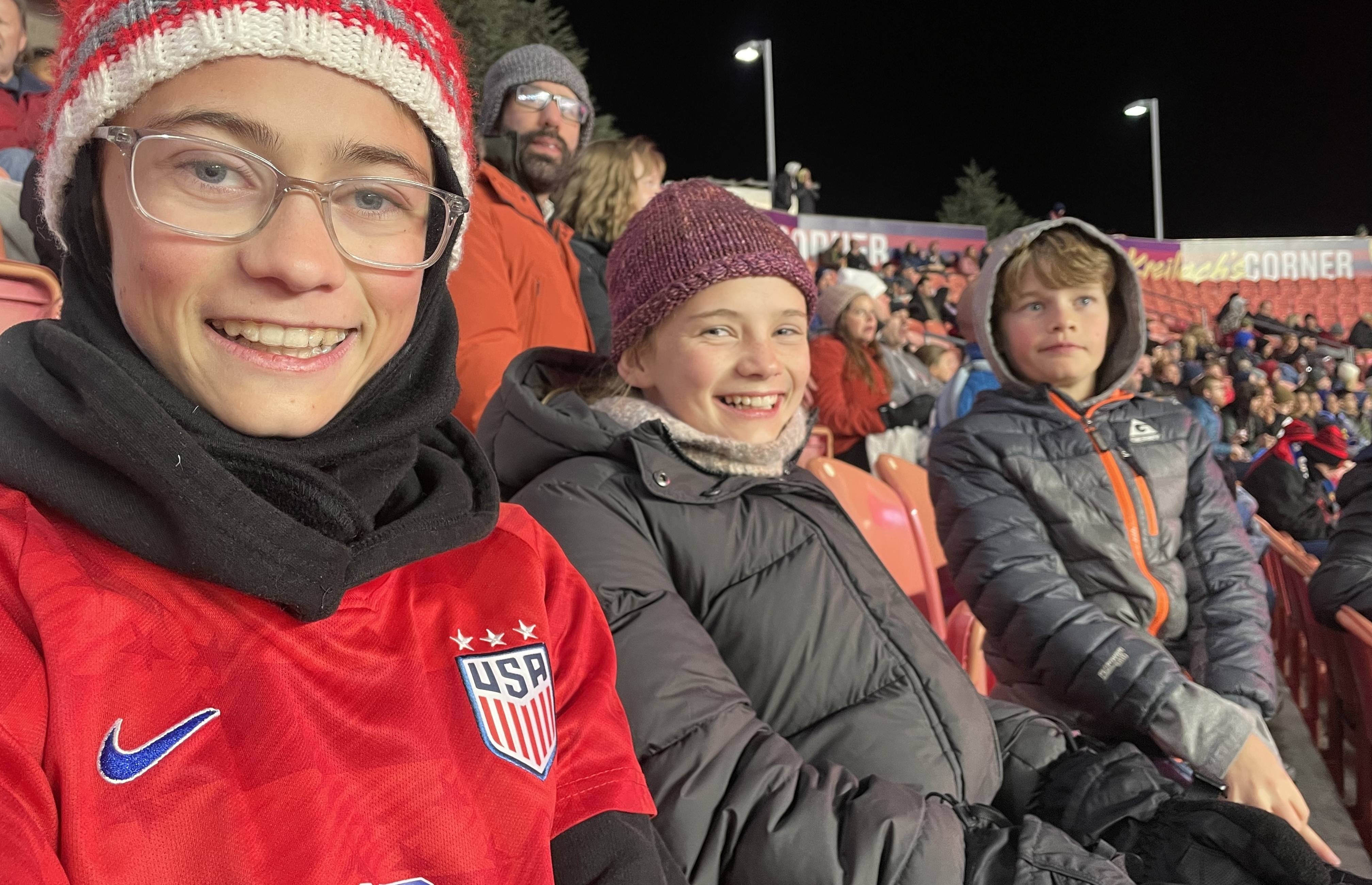 Thank you so much for the opportunity to watch the US Women’s National Soccer Team. Although a very cold night we had a wonderful night and truly enjoyed watching the game.