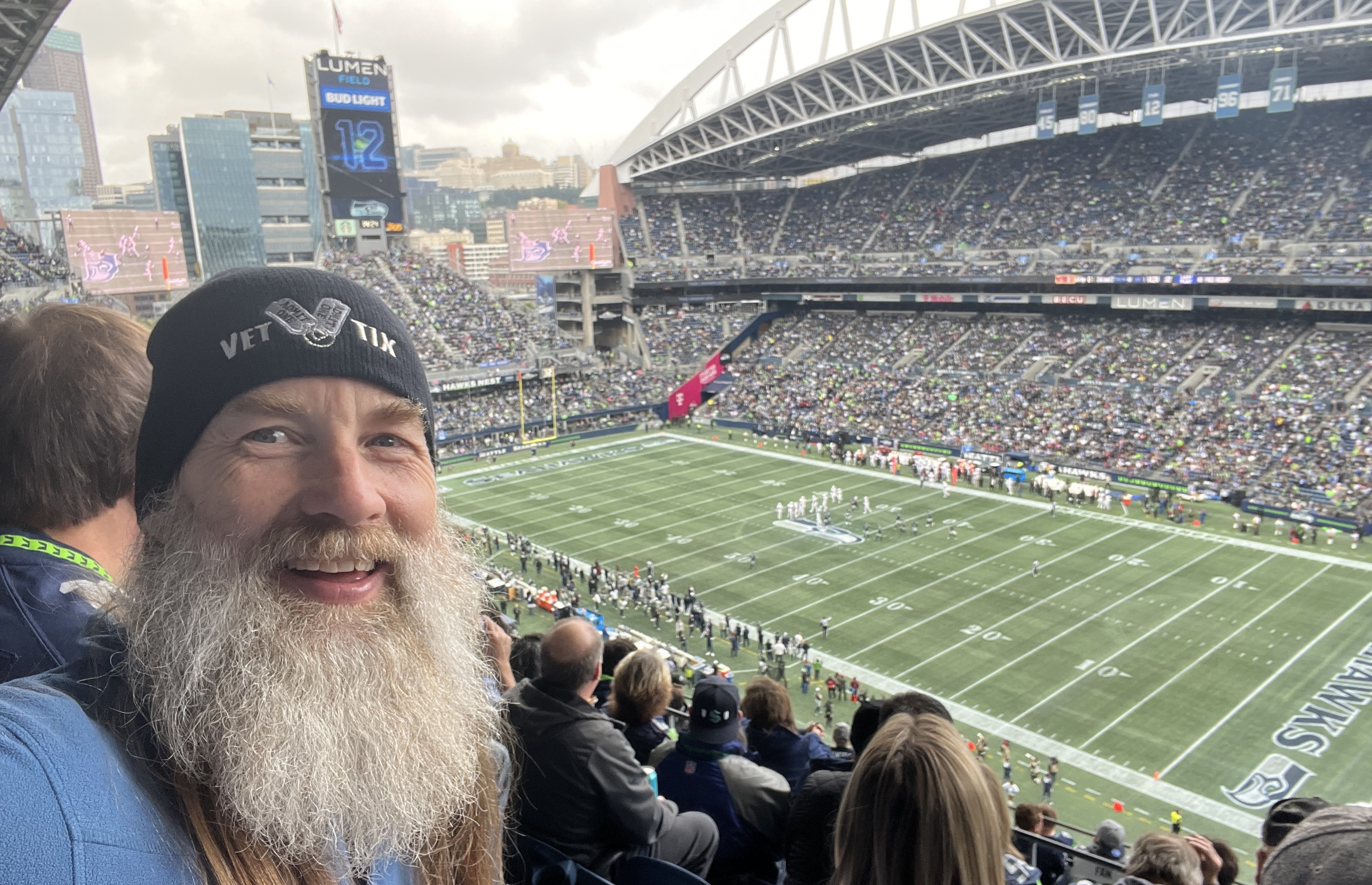 Thanks to The SEA….HAWKS !!!! and Vet Tix for an awesome game experience. I took the whole family and it was the first NFL game for three of them. Everyone had a great time. Great job by the Team, great stadium and awesome fans. Thanks so much 😀