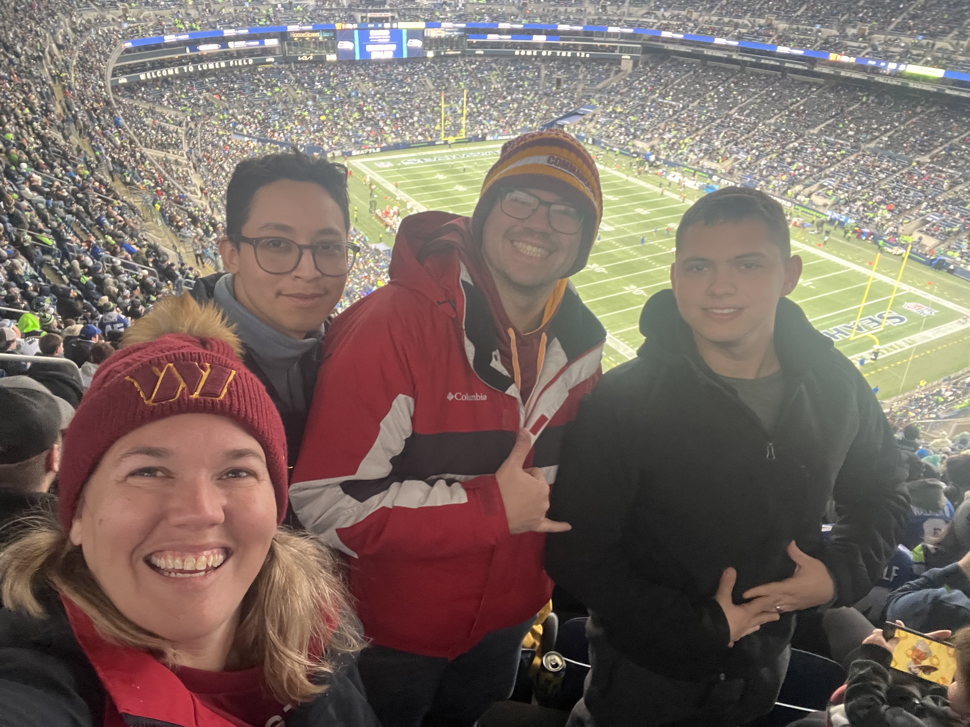 Thank you so much for the tickets! The game was so fun and entertaining! I love that we got to cheer on our team (Commanders) even though they only come to Seattle once every 4 years! I also got to bring 2 of my junior sailors that have never been to a NFL football game because of cost. We all had a great time!