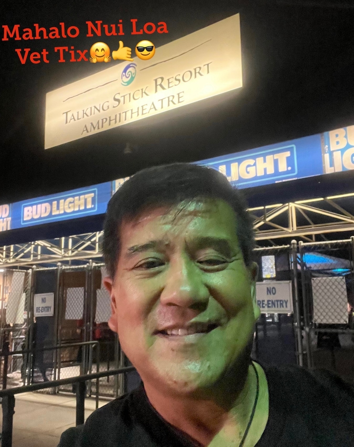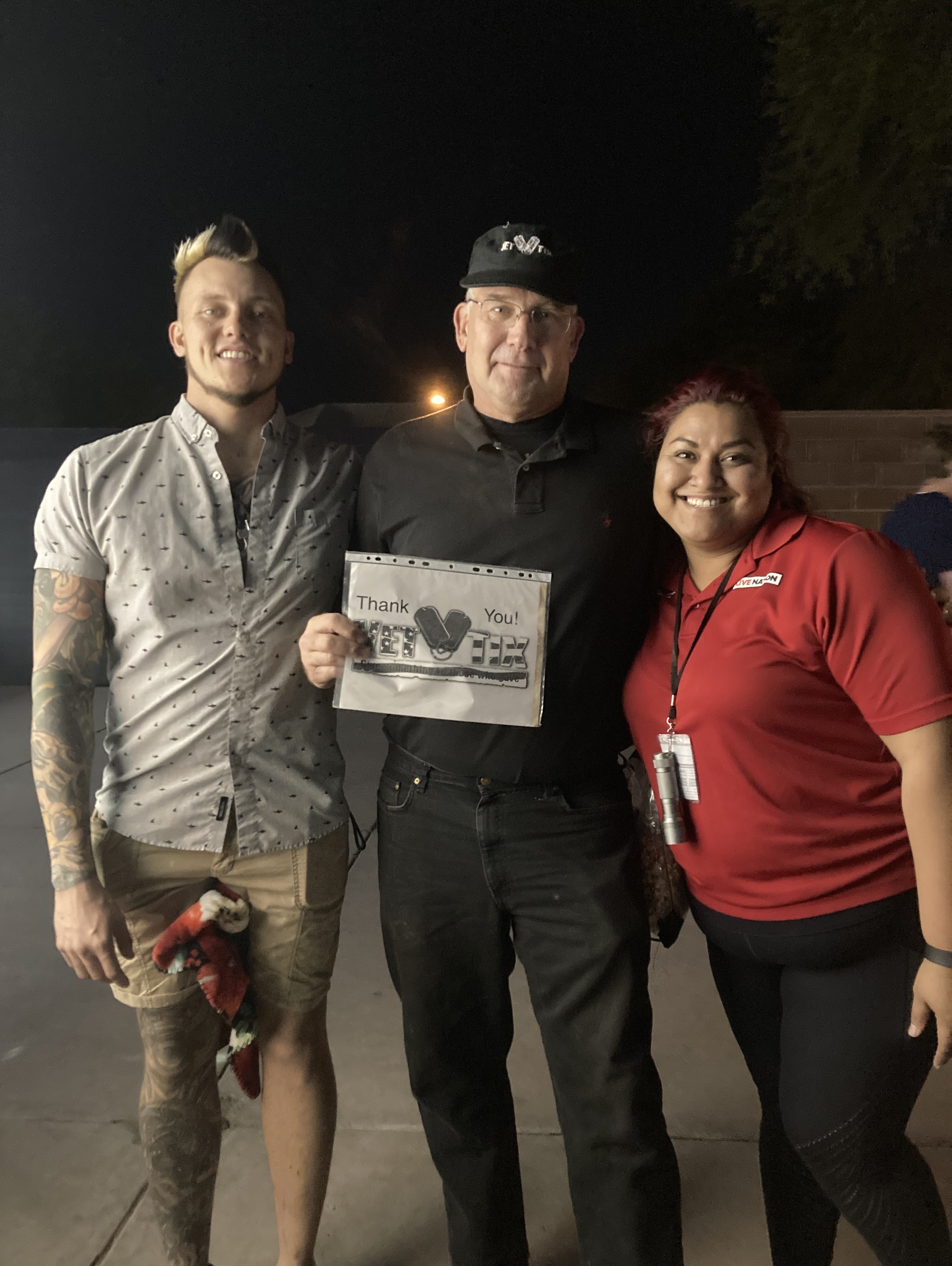 Thank you Live Nation for your generosity! My family and I had an enjoyable evening listening to AIC and GNR on a balmy Phoenix evening. ( Live Nation Associate in picture to verify venue location at Talking Stick Resort Amphitheater.)