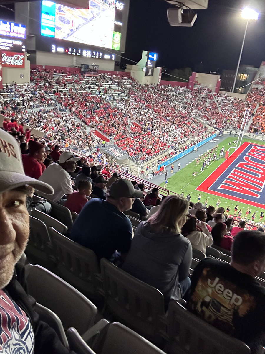 Huge thank you to The University of Arizona for providing us a chance to have a game time experience that was incredible. I'm truly grateful for the university's support to veterans and being able to give us a chance to catch how the team continues to move towards relevance. Thank you again and Bear Down!