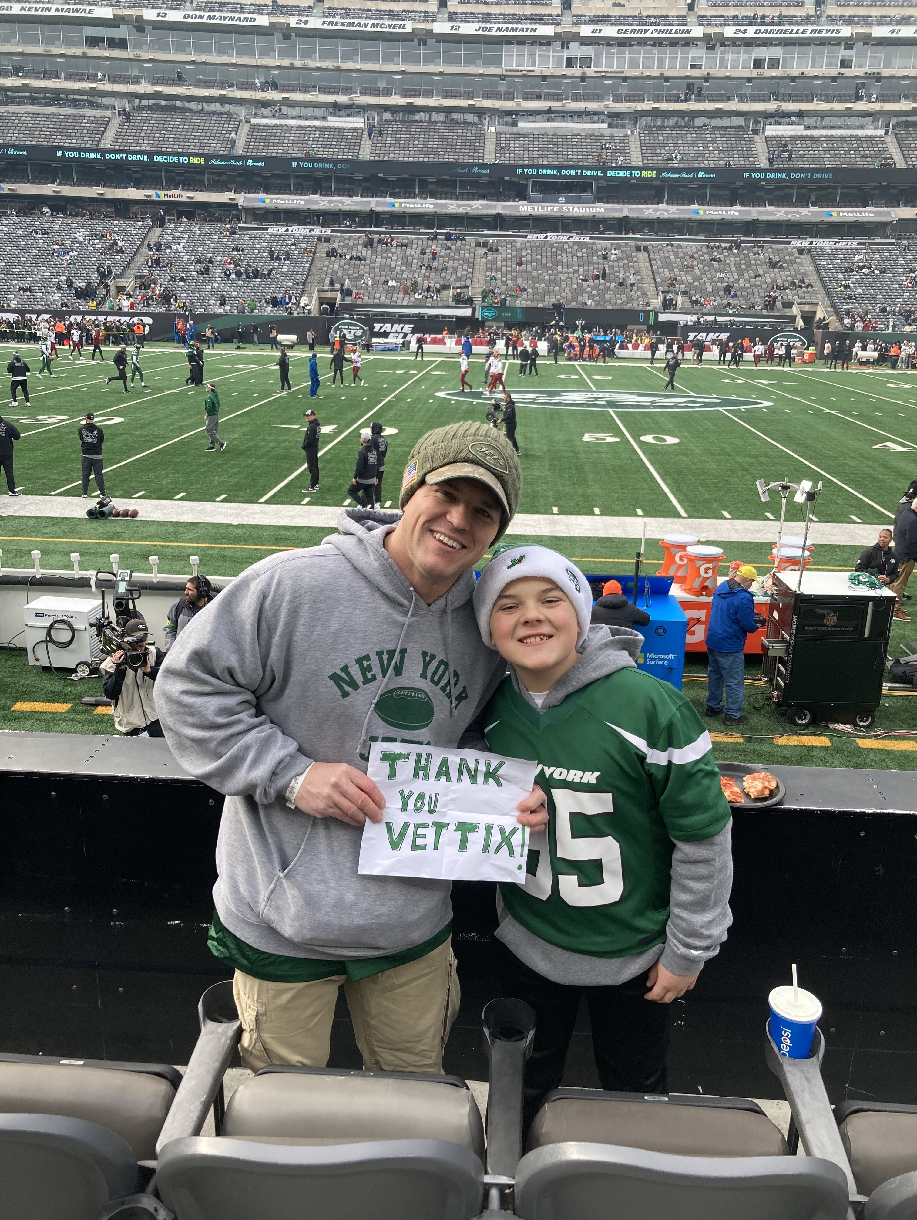 Thank you all for your generosity. I missed years of NY JETS football games, birthdays, family events, and holidays due to my deployments. These tickets allowed me to make up time with my family. Thank you, and Happy Holidays. Respectfully, Ron