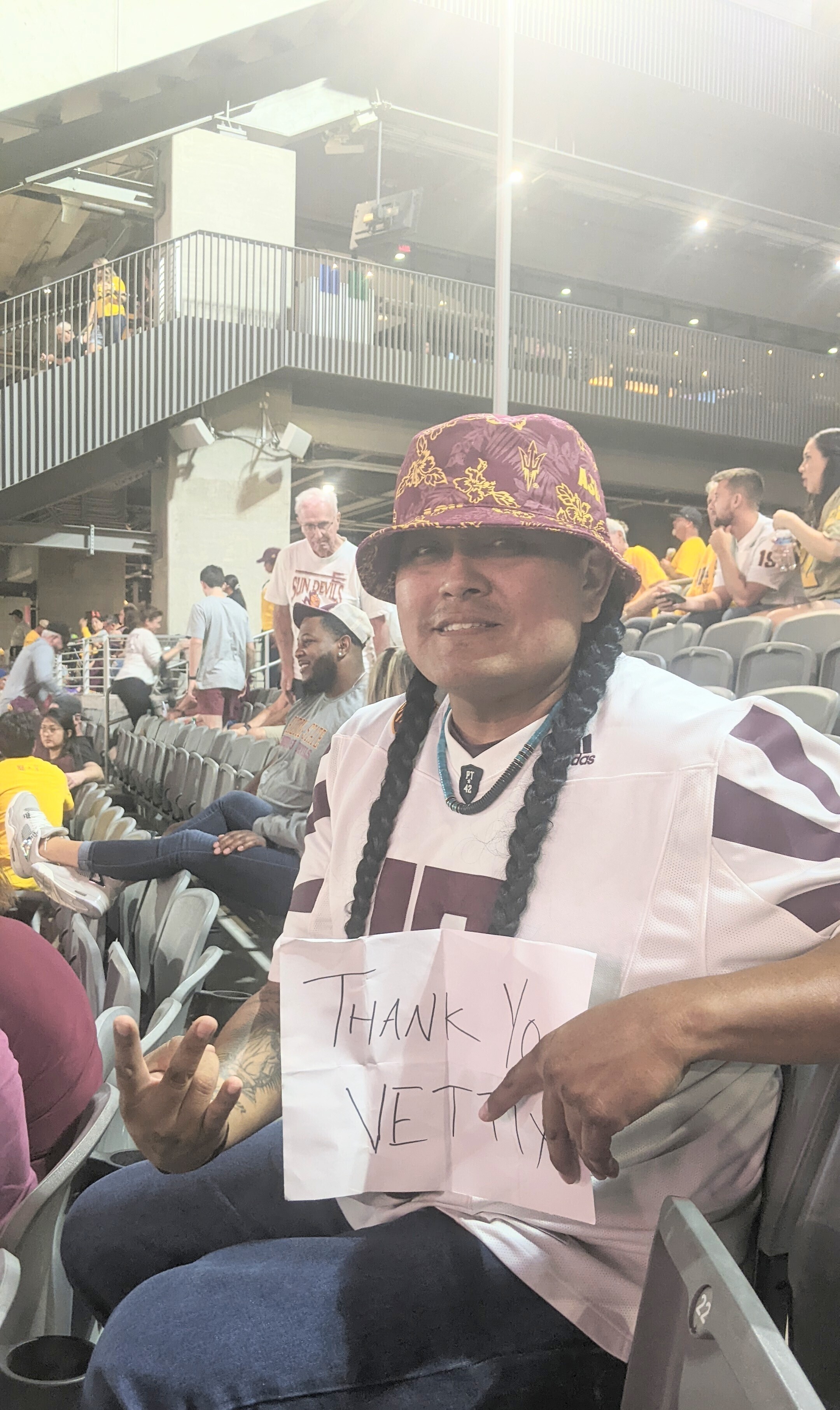 Thanks to ASU and Vettix, I had a great night with the Sun Devils. Such awesome seats with other Veterans and first responders hangin together with our Forks Up! So much Fun