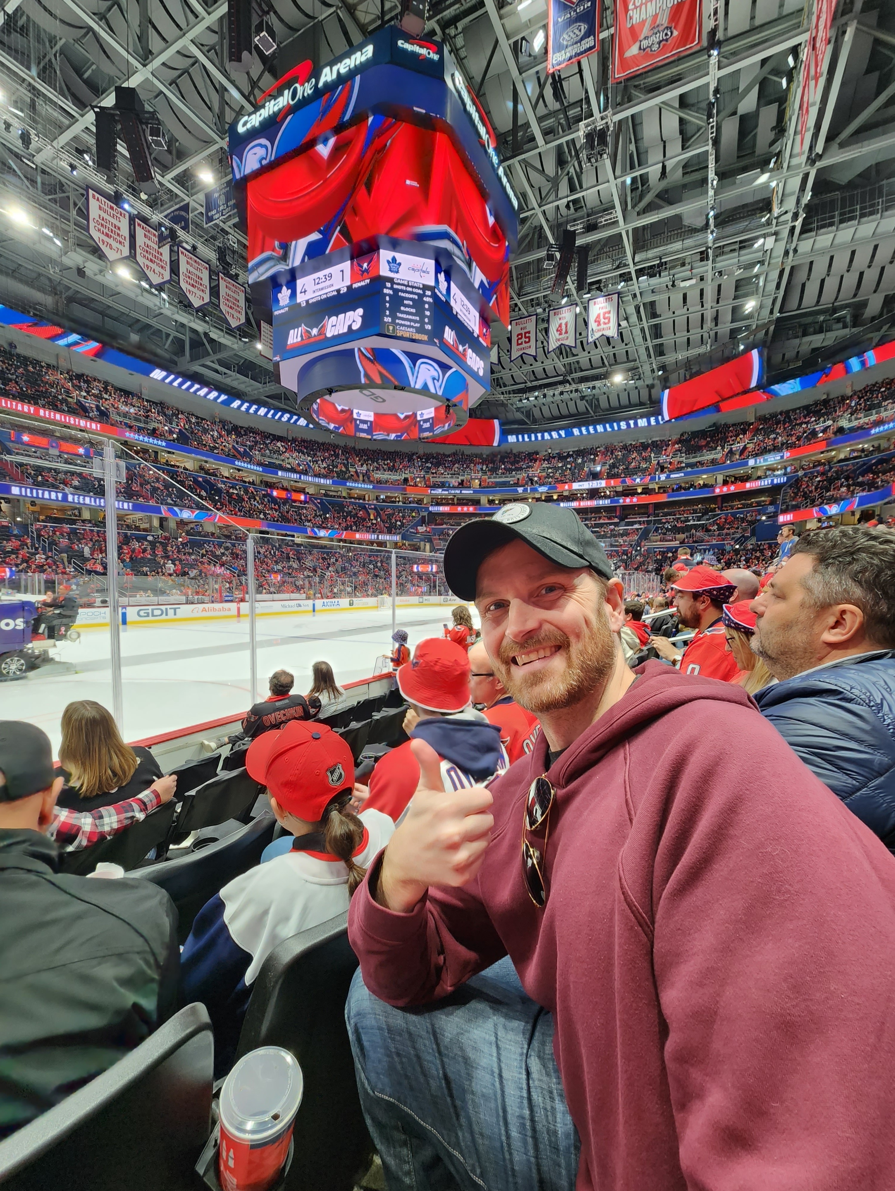 Thanks to VET TIX and our generous donors! A terrific night to Rock the Red with family and fans. Let’s go Caps!