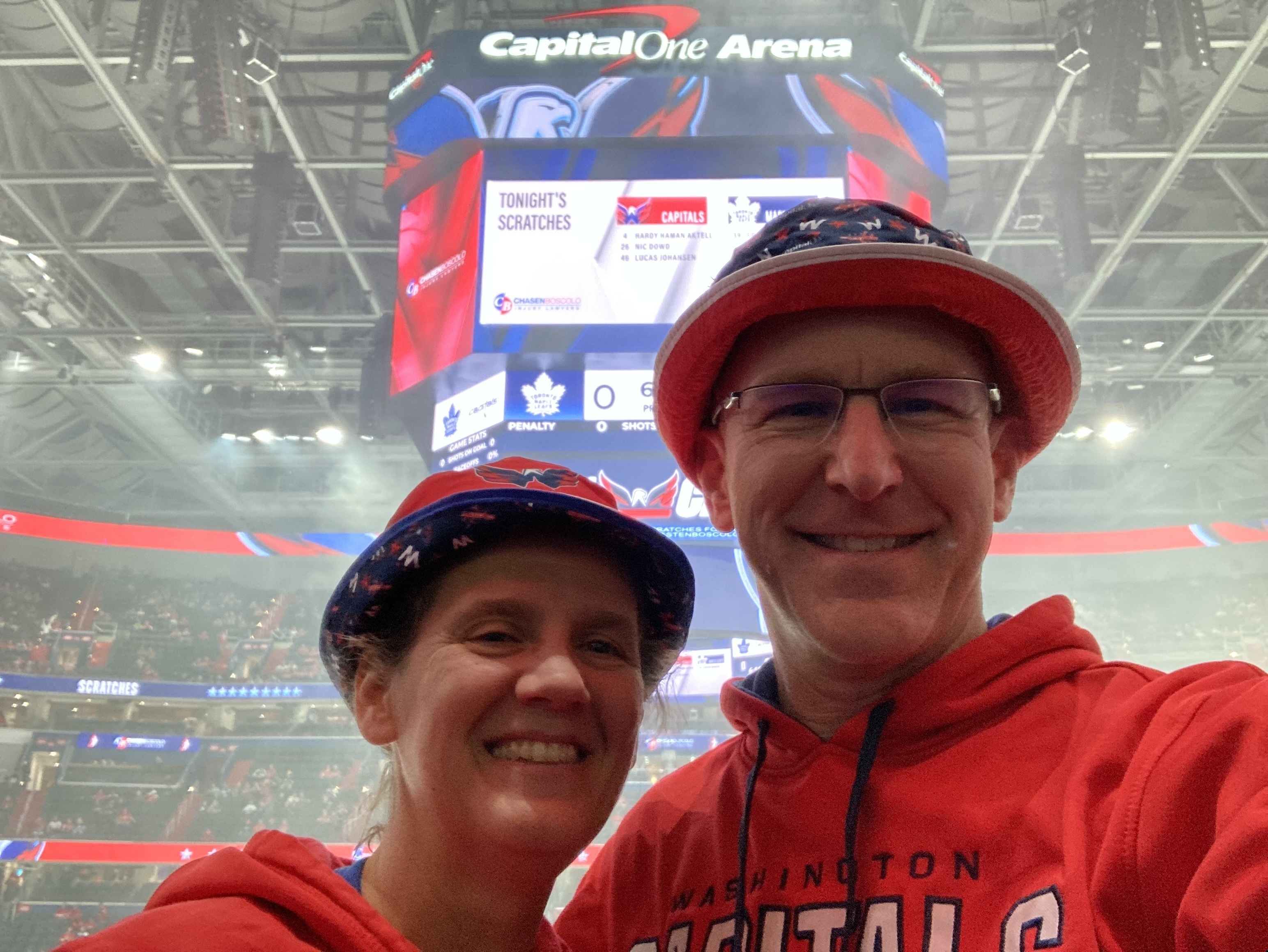 It was bucket hat night! We had a great time eventhough the Caps lost. Thank you so much Monumental Sports for giving us tickets. #ALLCAPS