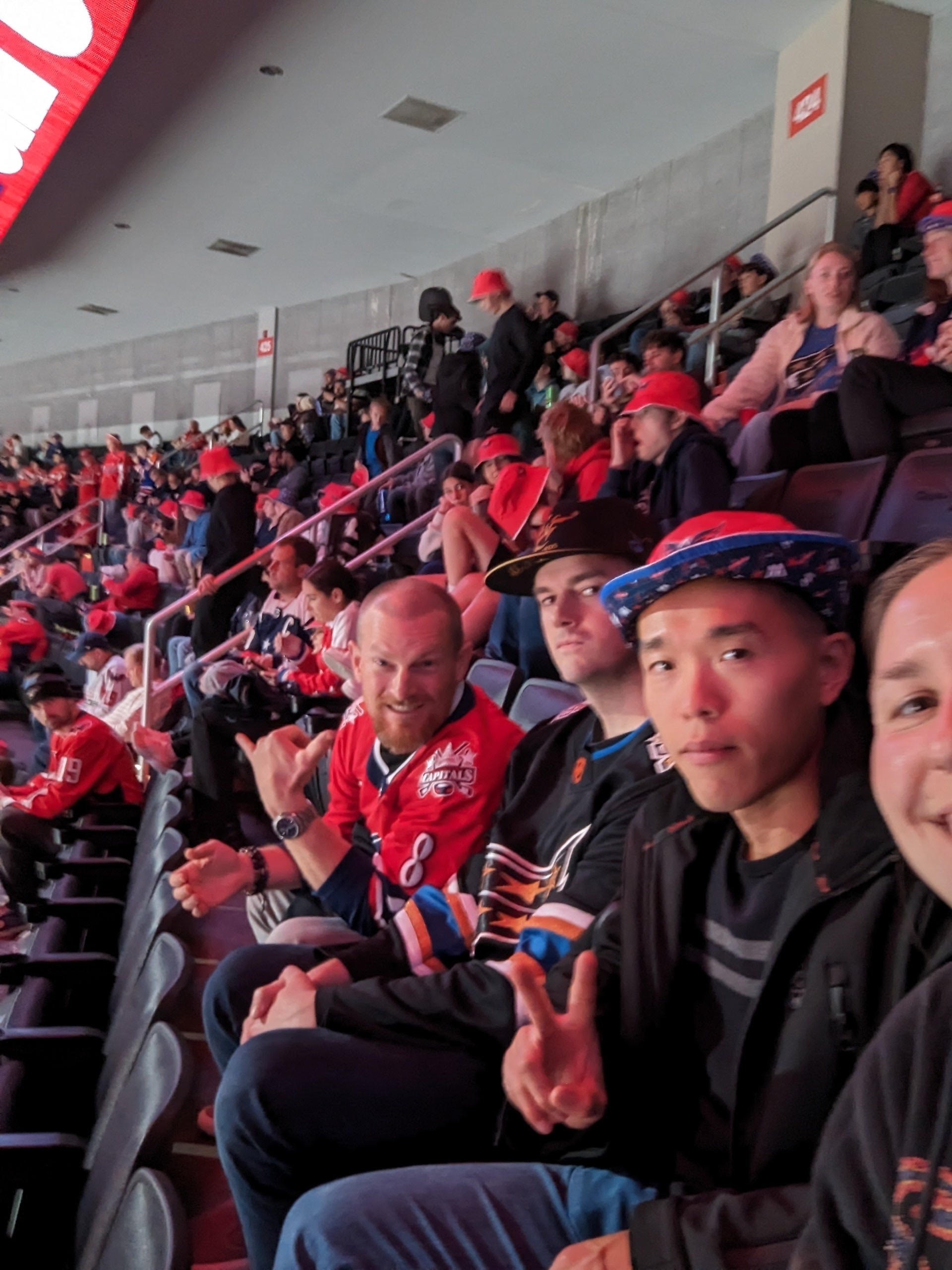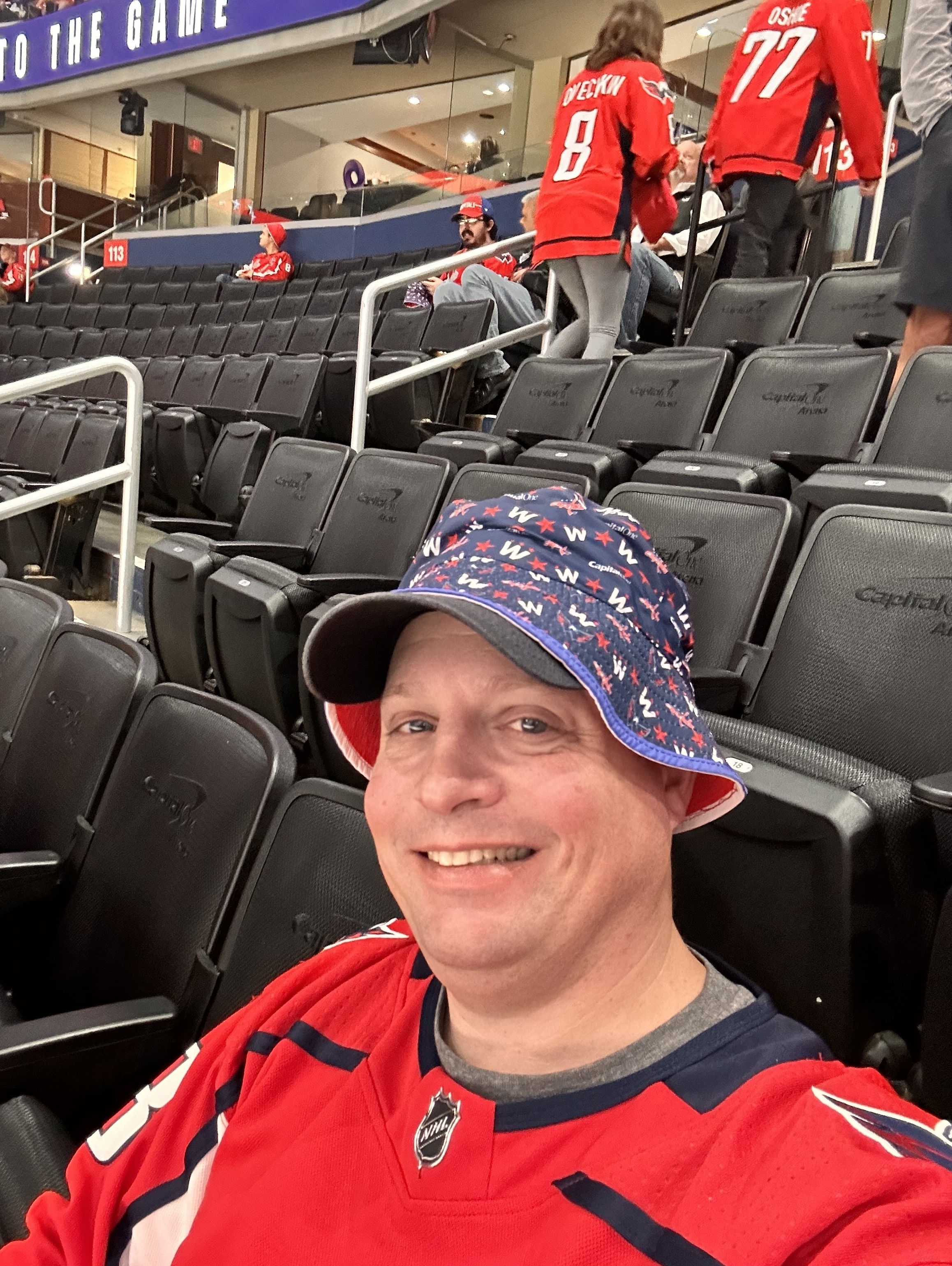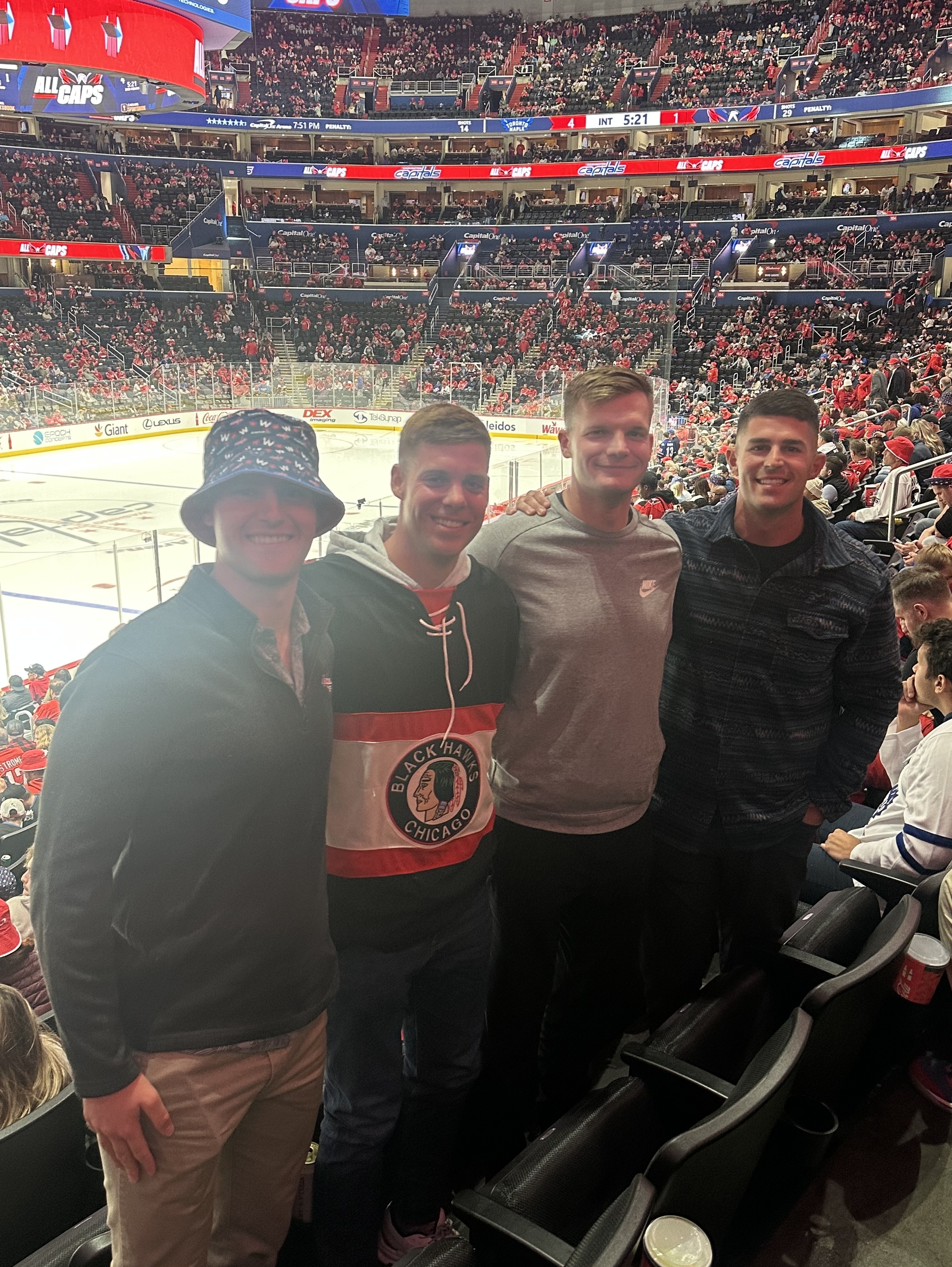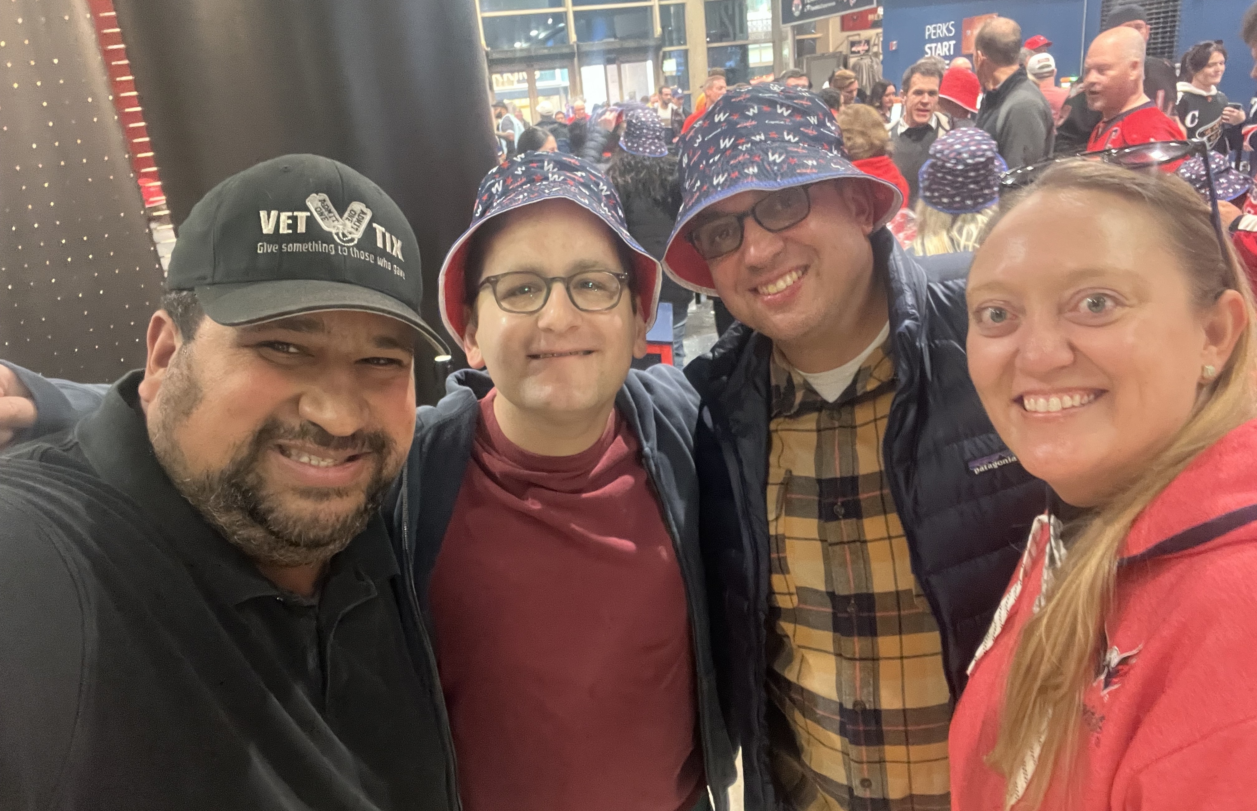 Thank you to Monumental Sports for the tickets to the Caps game. It was a hard one to watch, but with bucket hat night and being in the Chic Fil A "spot the cow" section, we all had a great time. Thank you again for all you do for us vets and our families.