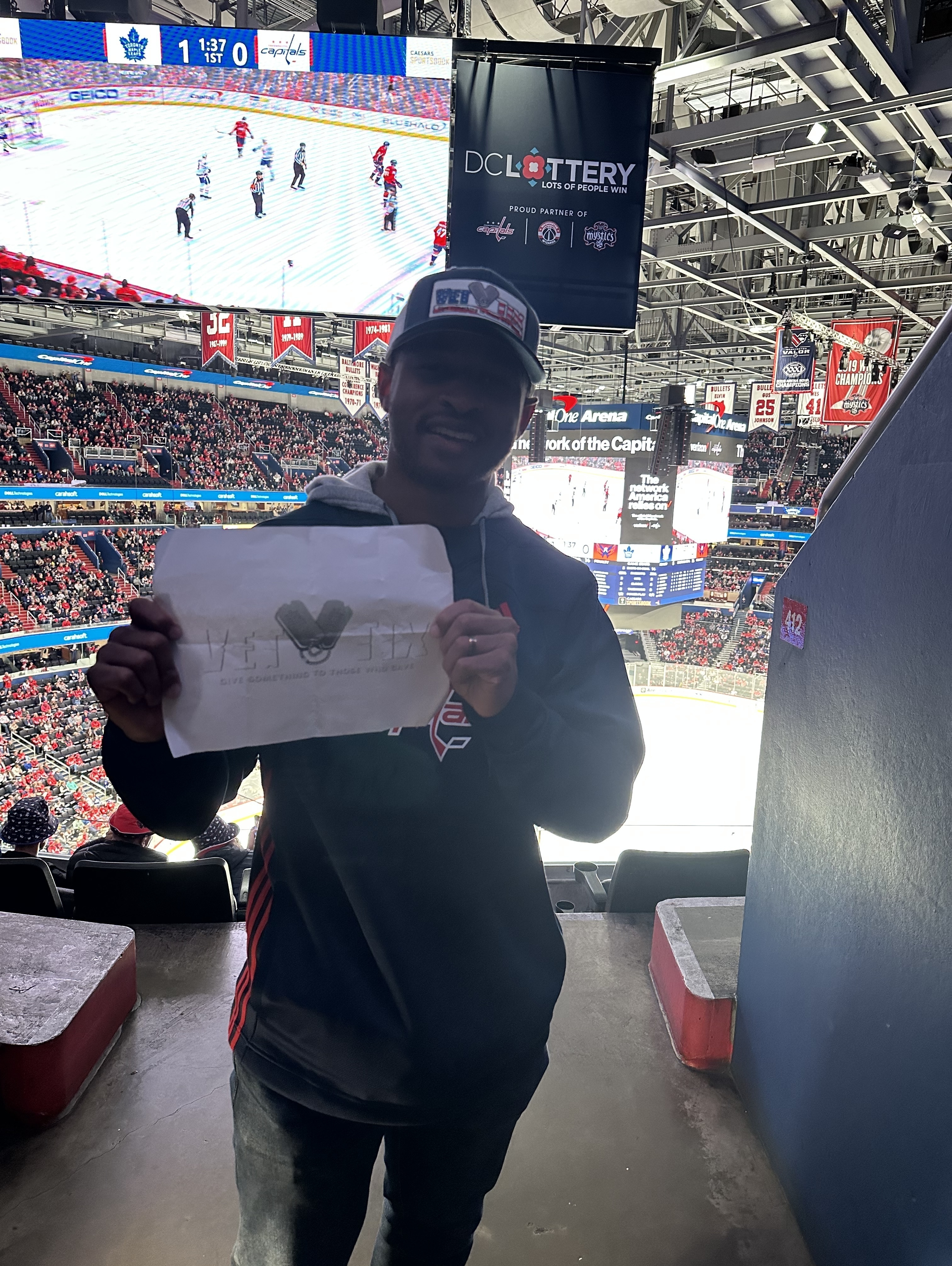 Fantastic Opportunity to spend time with Military Friends! We had Army, Navy, Air Force & Civilian Representation at the Caps Game! Too bad they lost to the Maple Leafs, but we still had a Great Time. Thank You for supporting Vet Tix! Steve