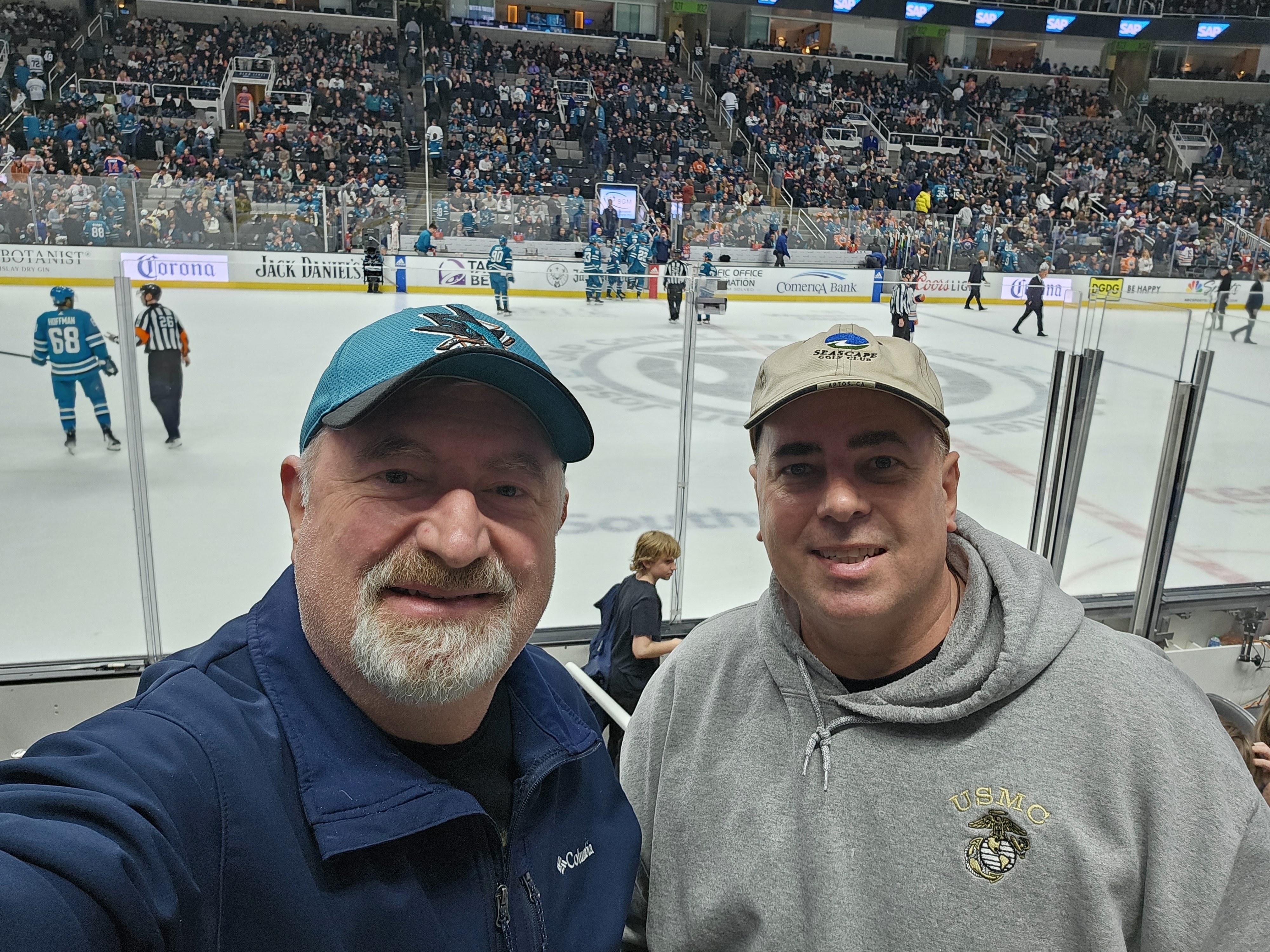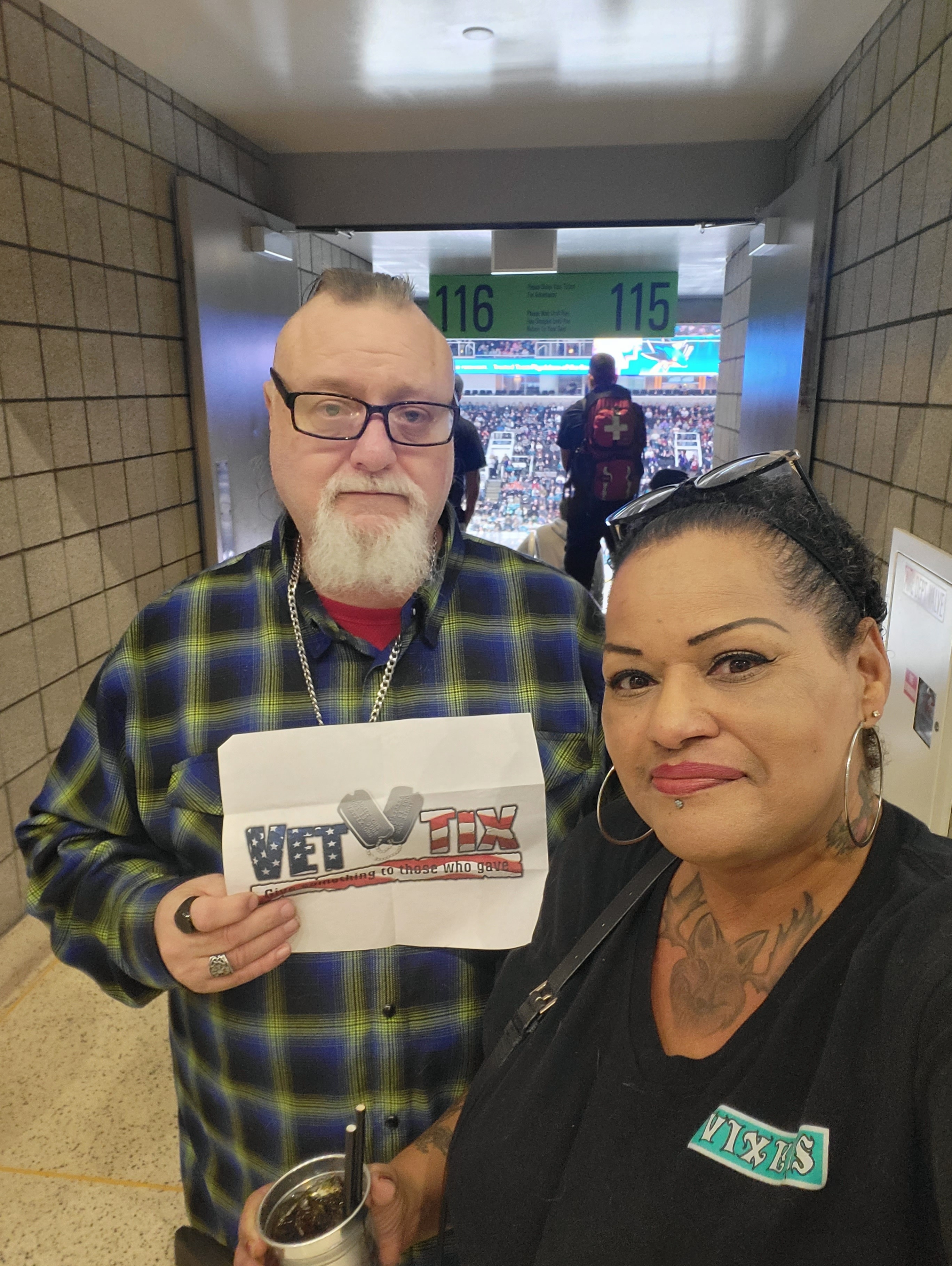 Thank you to the San Jose Sharks, Veteran Tickets Foundation Purchases. Your donation helped an Air Force and Marine veteran get together and catch up as we hadn't seen each other for a while. The seats were terrific and we really enjoyed the watching the Sharks!