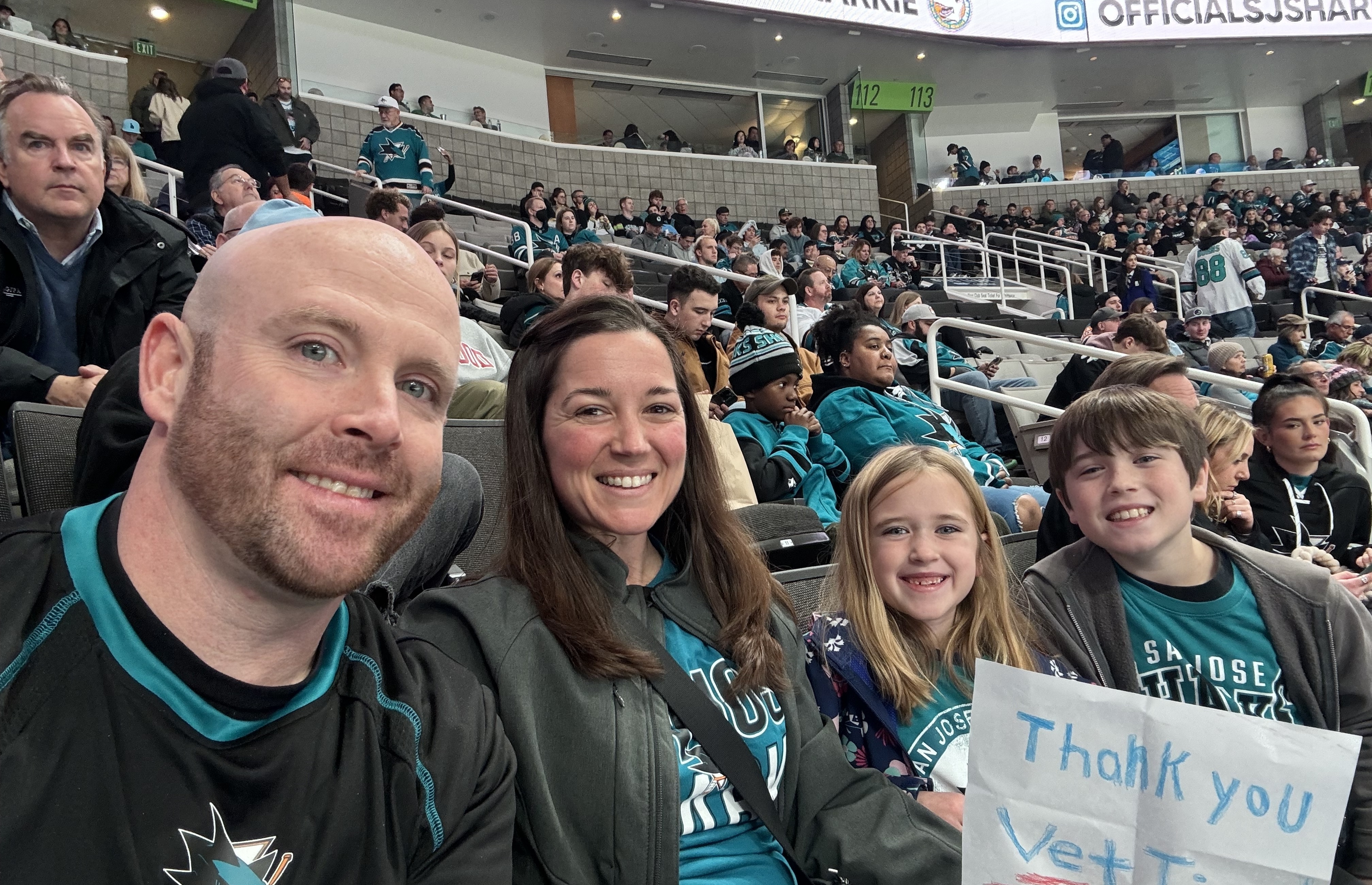 Thank you Vet Tix for tickets to our first Sharks game! My family had a blast & we are very appreciative!