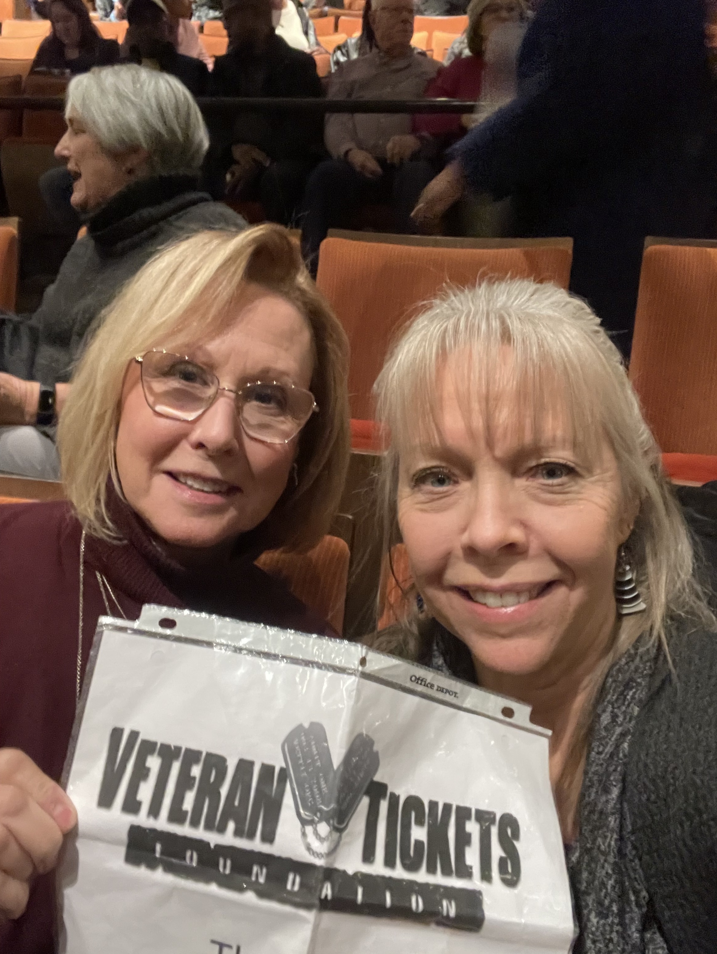 Thank you so much for these tickets… It was a fabulous show, and all four of us had a great time! My pic only has two of us, but all four of us were there!