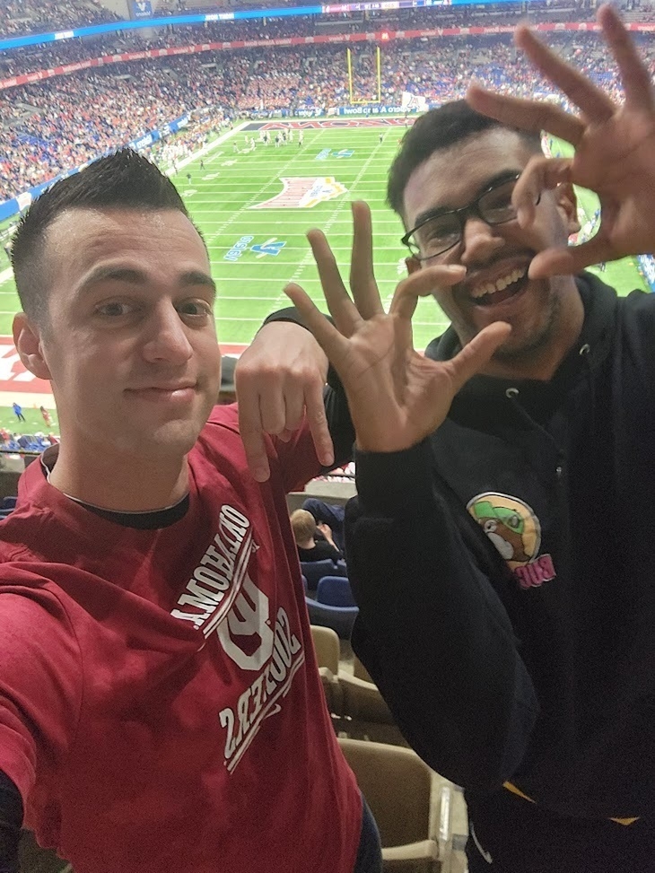Thank you so much for the Alamo Bowl tickets. Grew up with some of the biggest Sooner fans in the state of Indiana so it was a blessing to be able to represent them in San Antonio. The game was great (even if it wasn't the result I was hoping for)! The tickets were great and the atmosphere was electric!