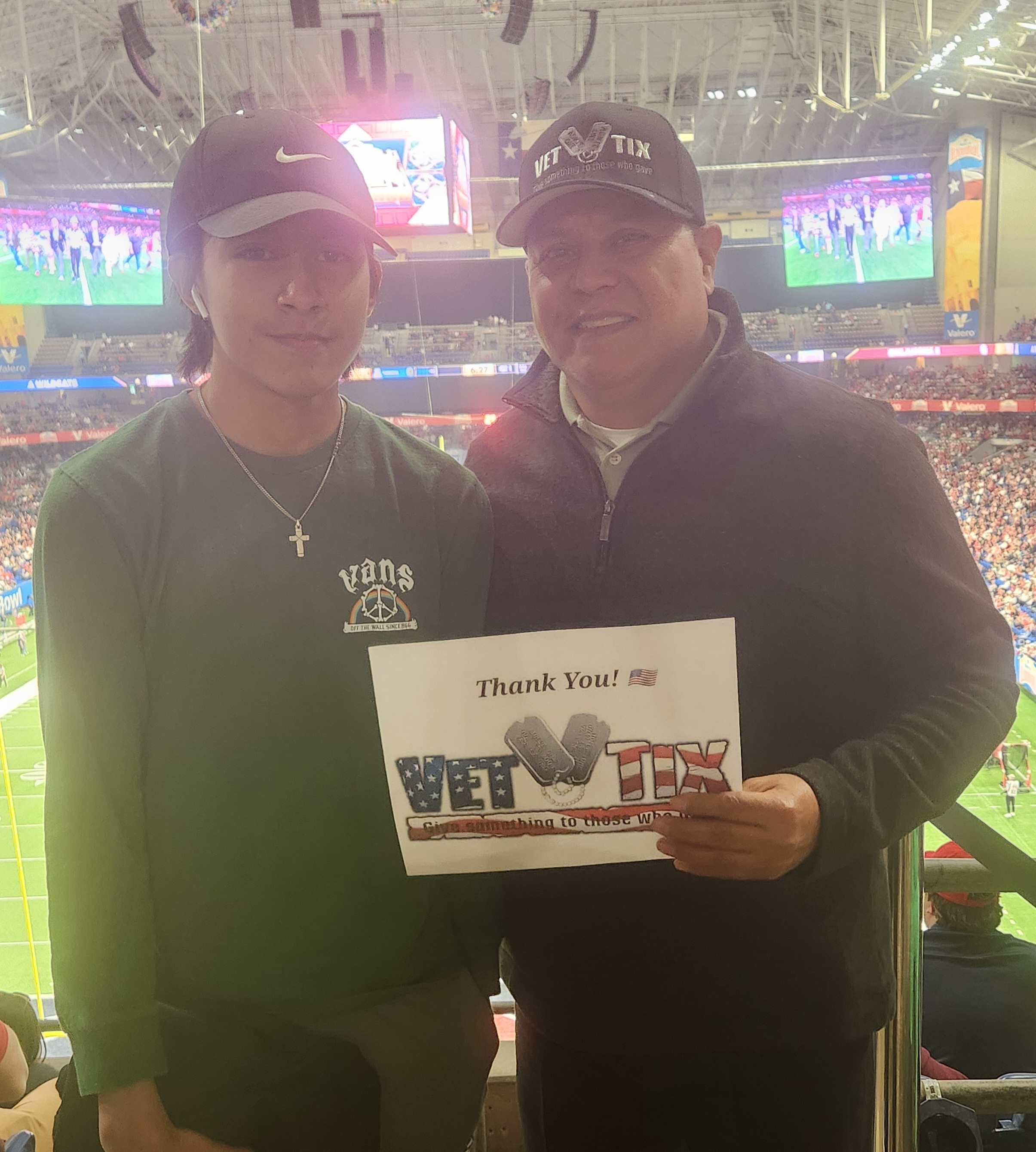 Thank you Valero Alamo Bowl, University of Arizona Wildcats (U of A) and Veteran Tickets Foundation for this amazing opportunity! My son was born in Arizona as a military brat and it was great to see his birth state University win the bowl. So thankful to you all! A father-son day we will remember forever!