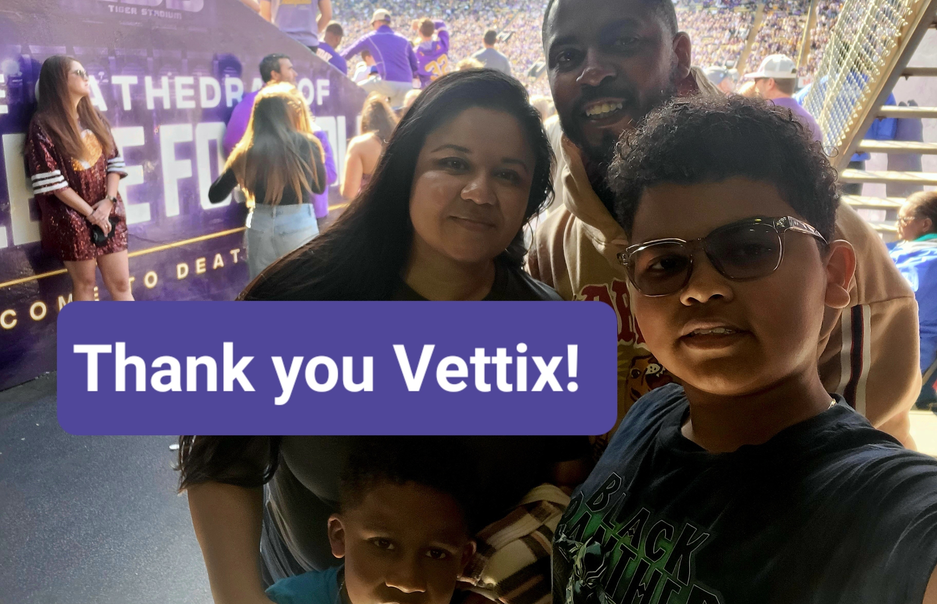 Thank you so much to VetTix and LSU for the great experience! We had a blast catching the Texas A&M vs LSU game!