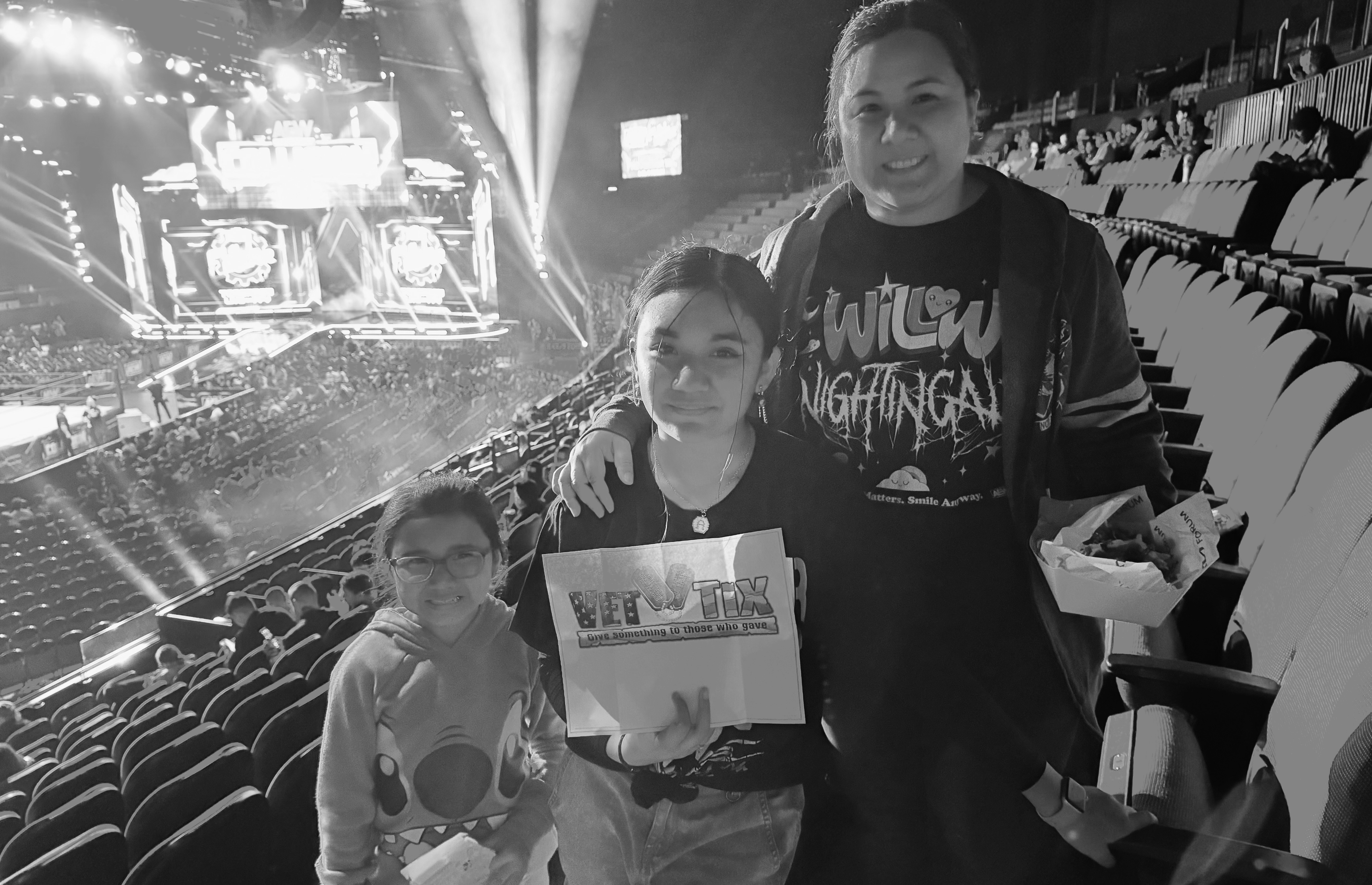 Thank you to AEW and Vet Tix for your generosity! My girls and I had an amazing night! We bond over wrestling every week at home but being able to do so in person was on a completely different level. From the bottom of our hearts thank you from the Guzman family!!