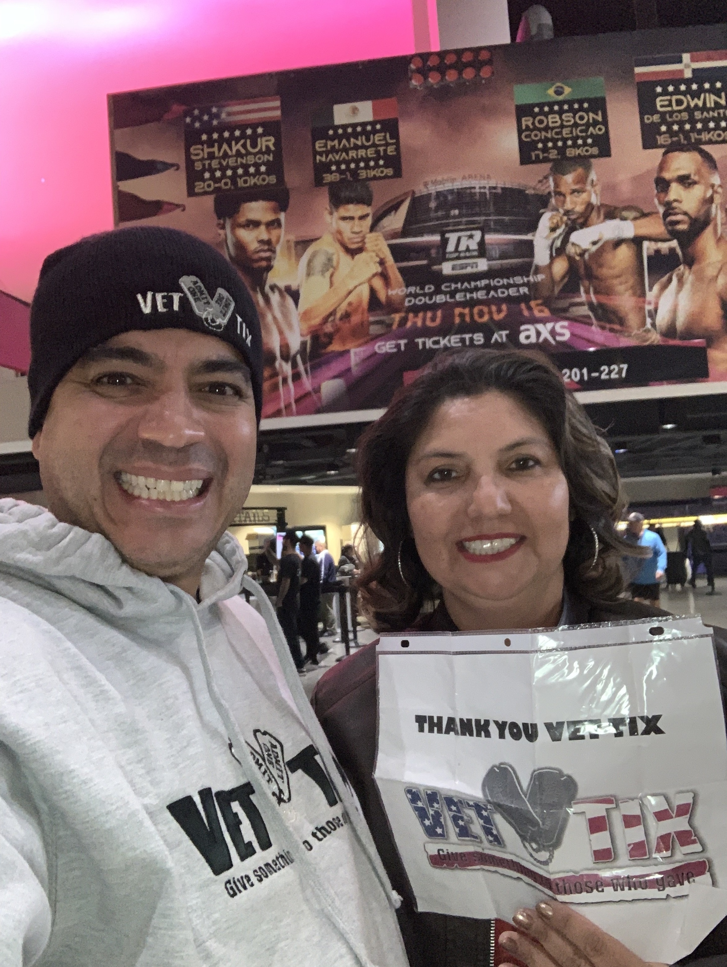 Thank you to Vet Tix and Top Rank Boxing for the tickets. We had a great evening! The seats were amazing. Can’t thank you enough.