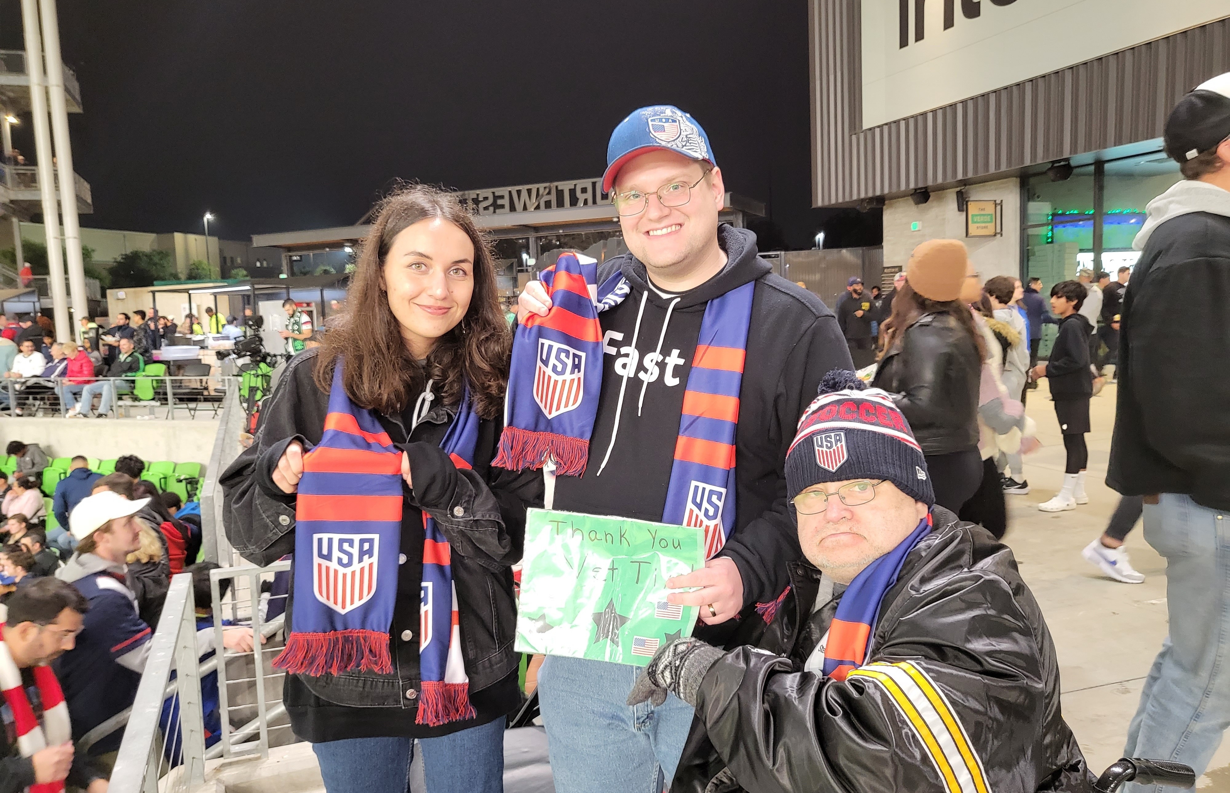 Thank you for the tickets for us to attend our first USA game as a family. This was an amazing experience for us to cheer on our team.