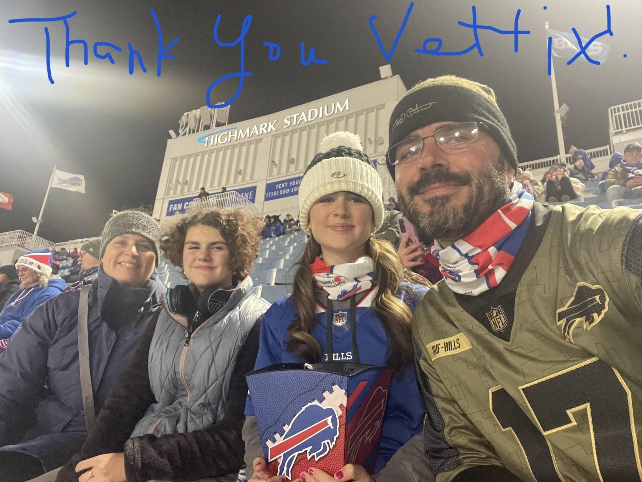 Thank you, Buffalo Bills for an amazing night. Even though it was a loss, the crowd atmosphere and stadium were amazing to experience! Thank you Bills and VetTix