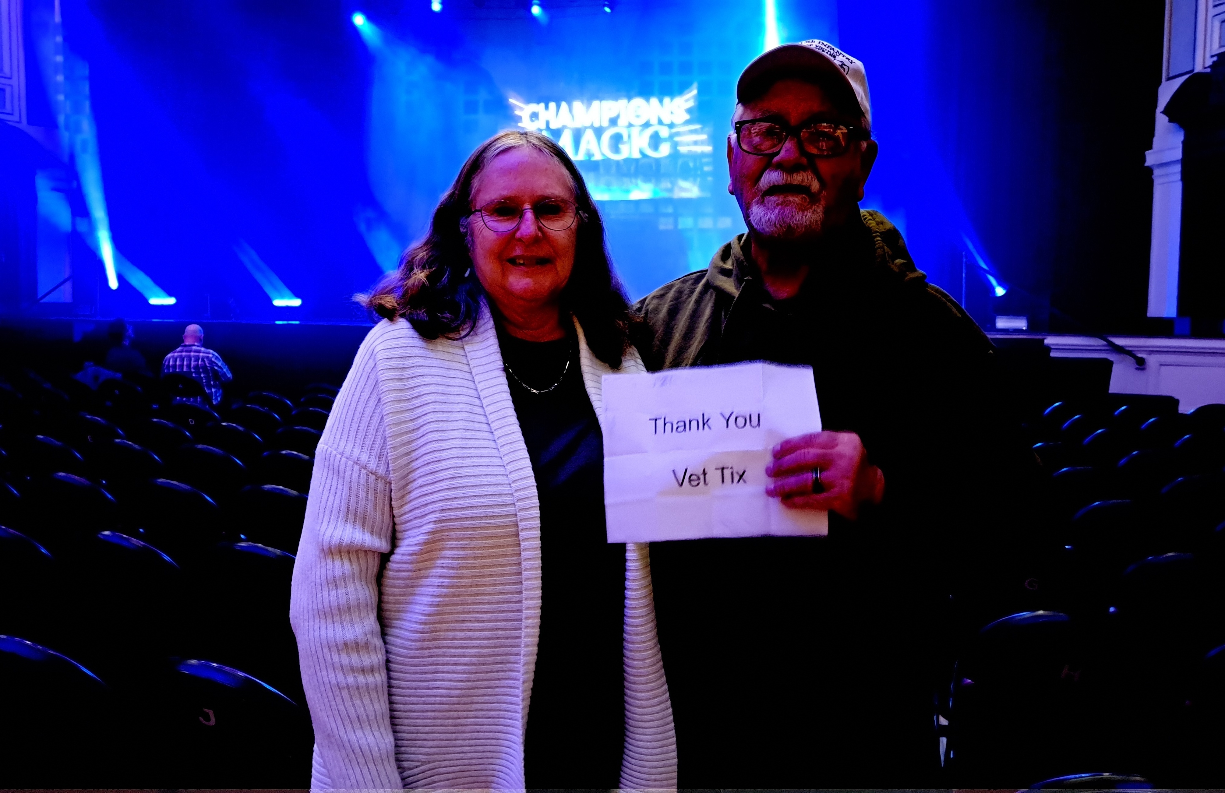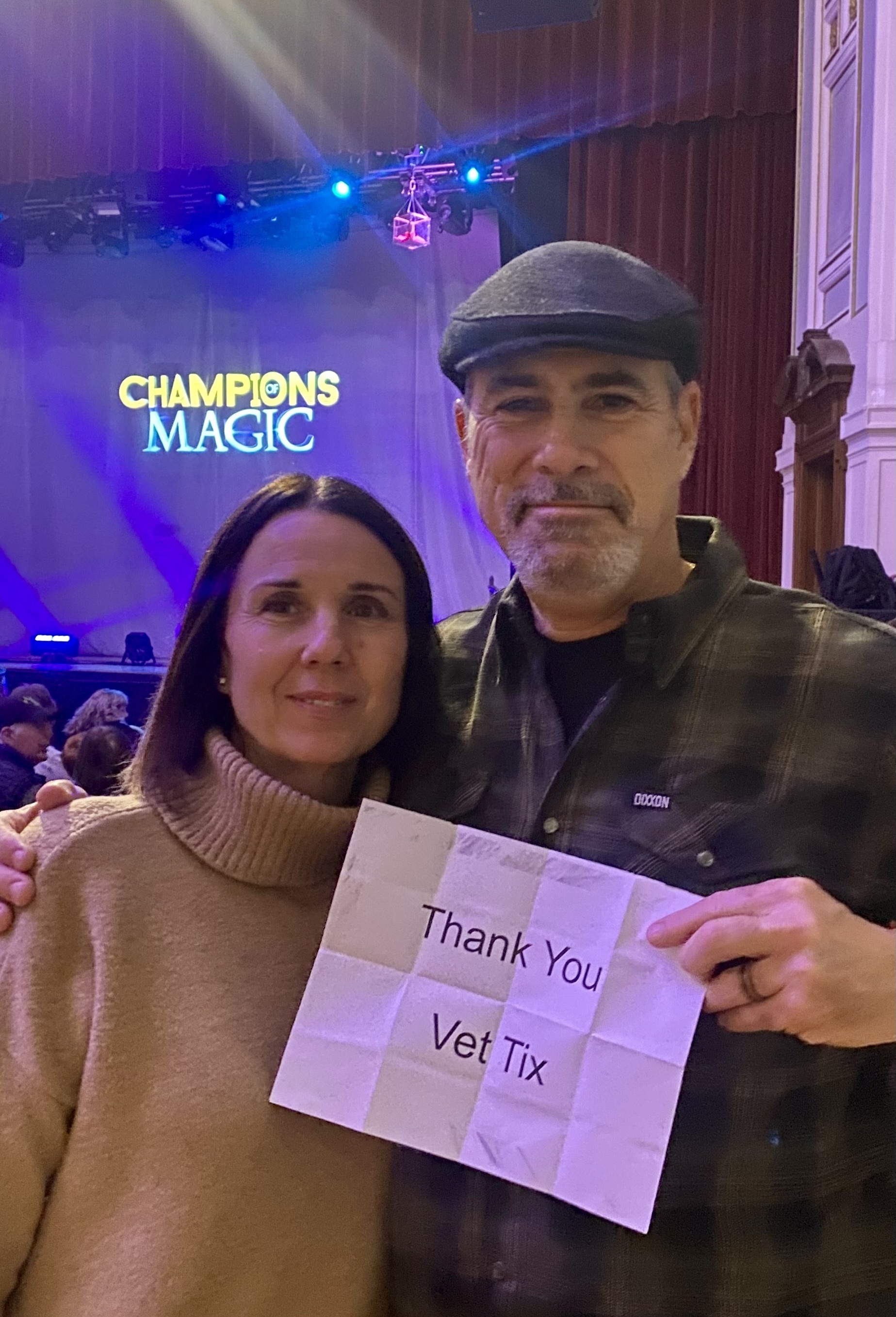 Dear Spectacle Management, thank you very much for donating tickets to Vet Tix for the Champions of Magic event in Lowell, MA. The show was amazing, and my fiancé and I had an awesome time. I had the benefit of meeting a fellow vet who was sitting next to us. Thank you again! Sincerely, Jon Nottonson