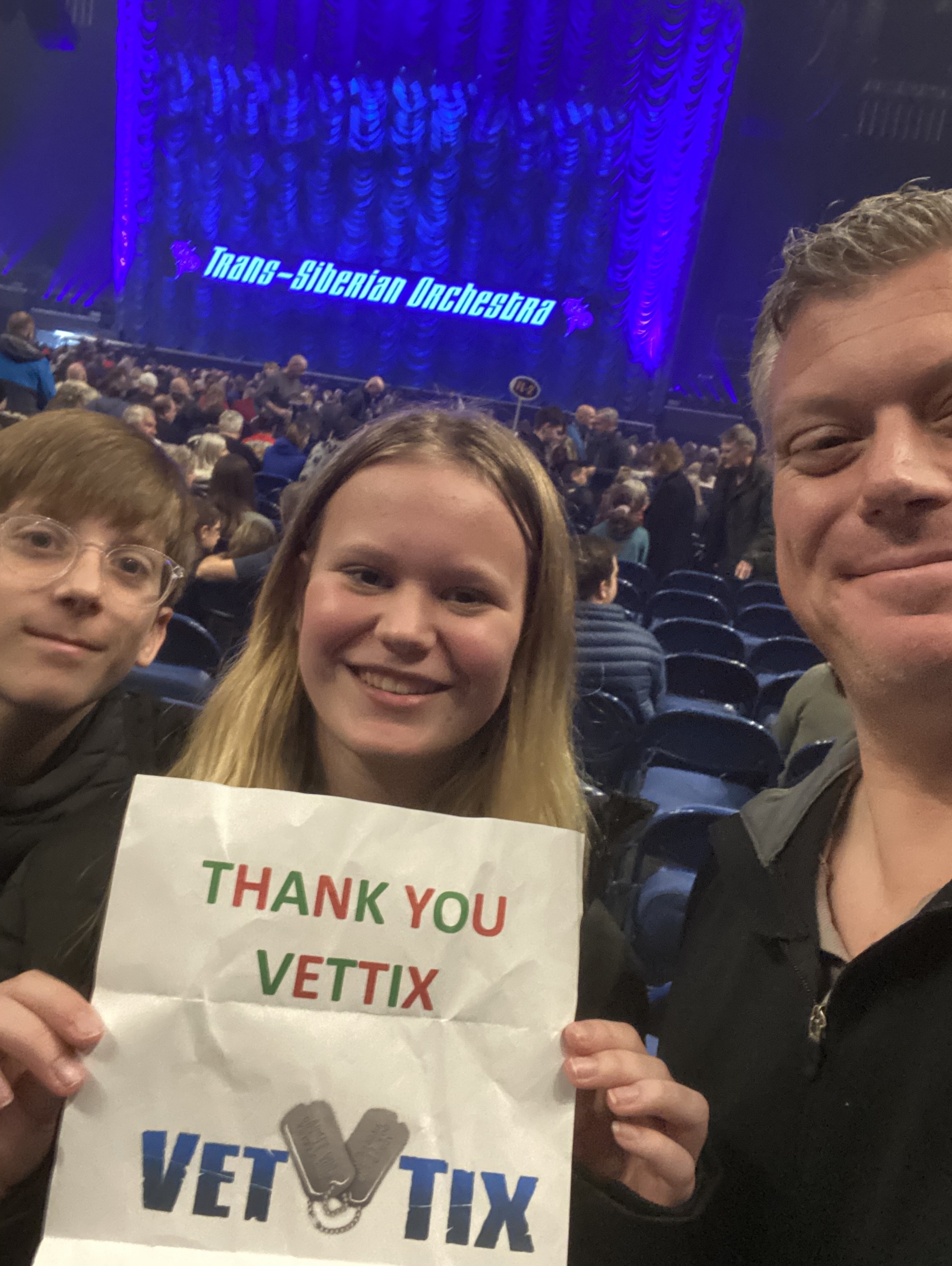I would like to thank VetTix, Ticket Master, and Trans-Siberian Orchestra for the tickets to this great show. It was super and timely as I just got out of the hospital. It sure made my day! Thanks again!!