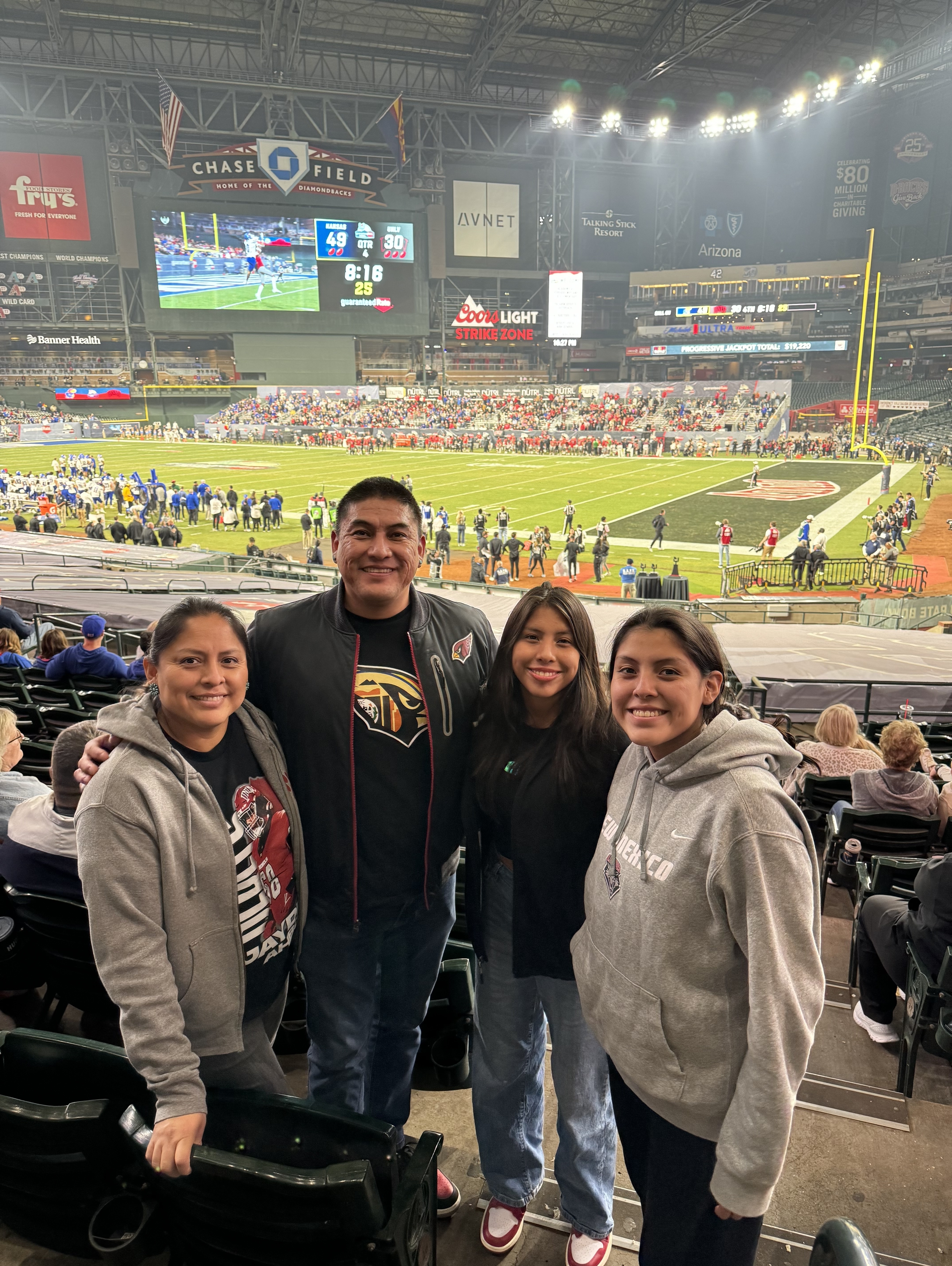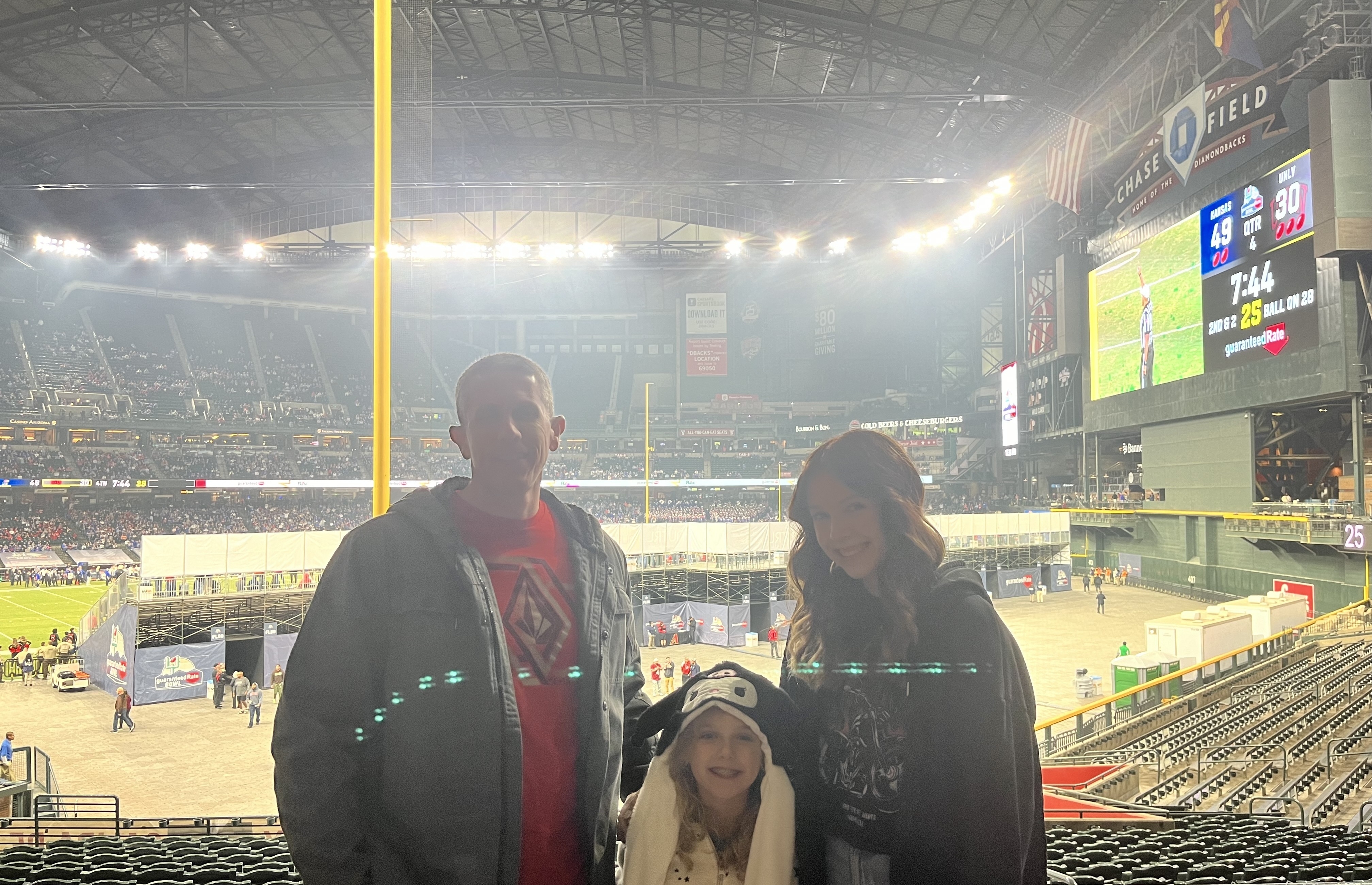 Thank you so much Fiesta Bowl for giving us the opportunity to experience a fun bowl game as a family! It was so neat seeing Chase field turn into a football field! Also the seats were so fun, there was no net on our side so it was hilarious to watch people catch footballs! #gojayhawks!!!
