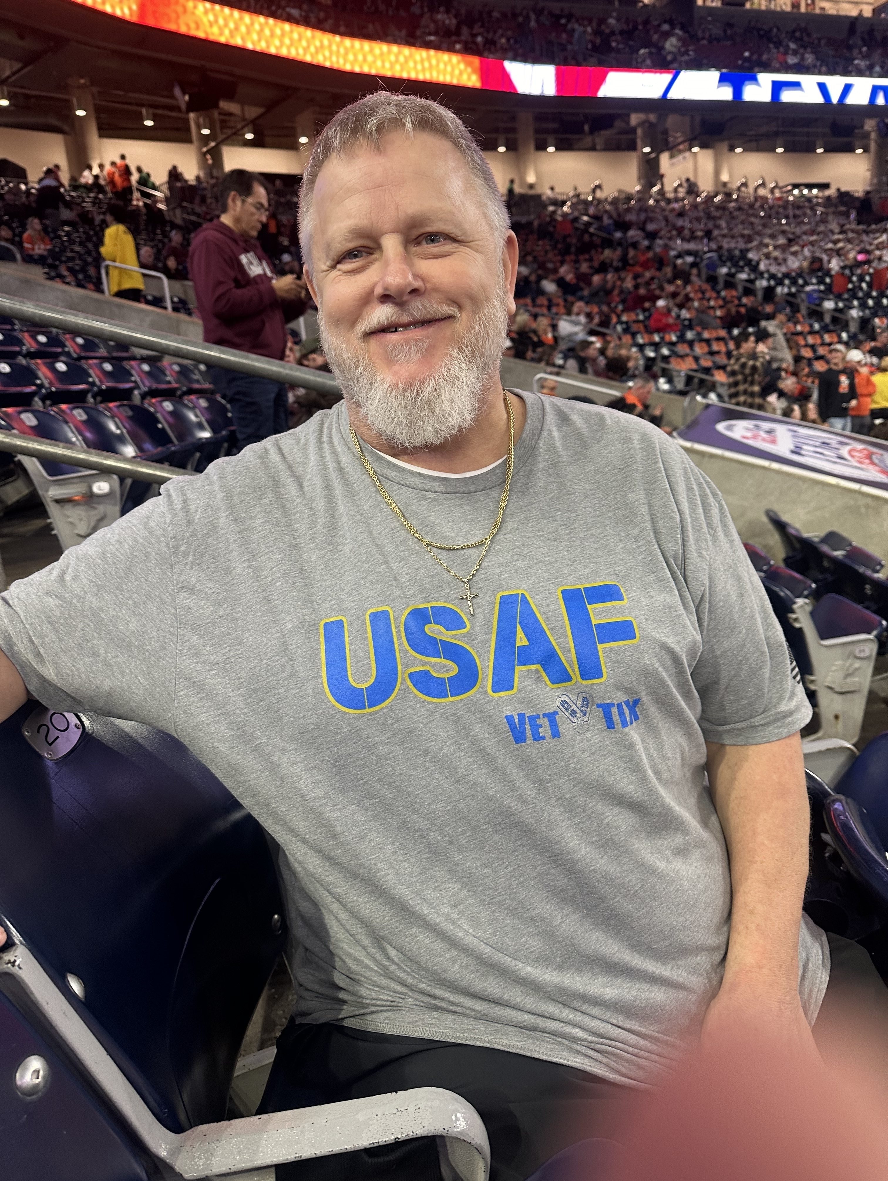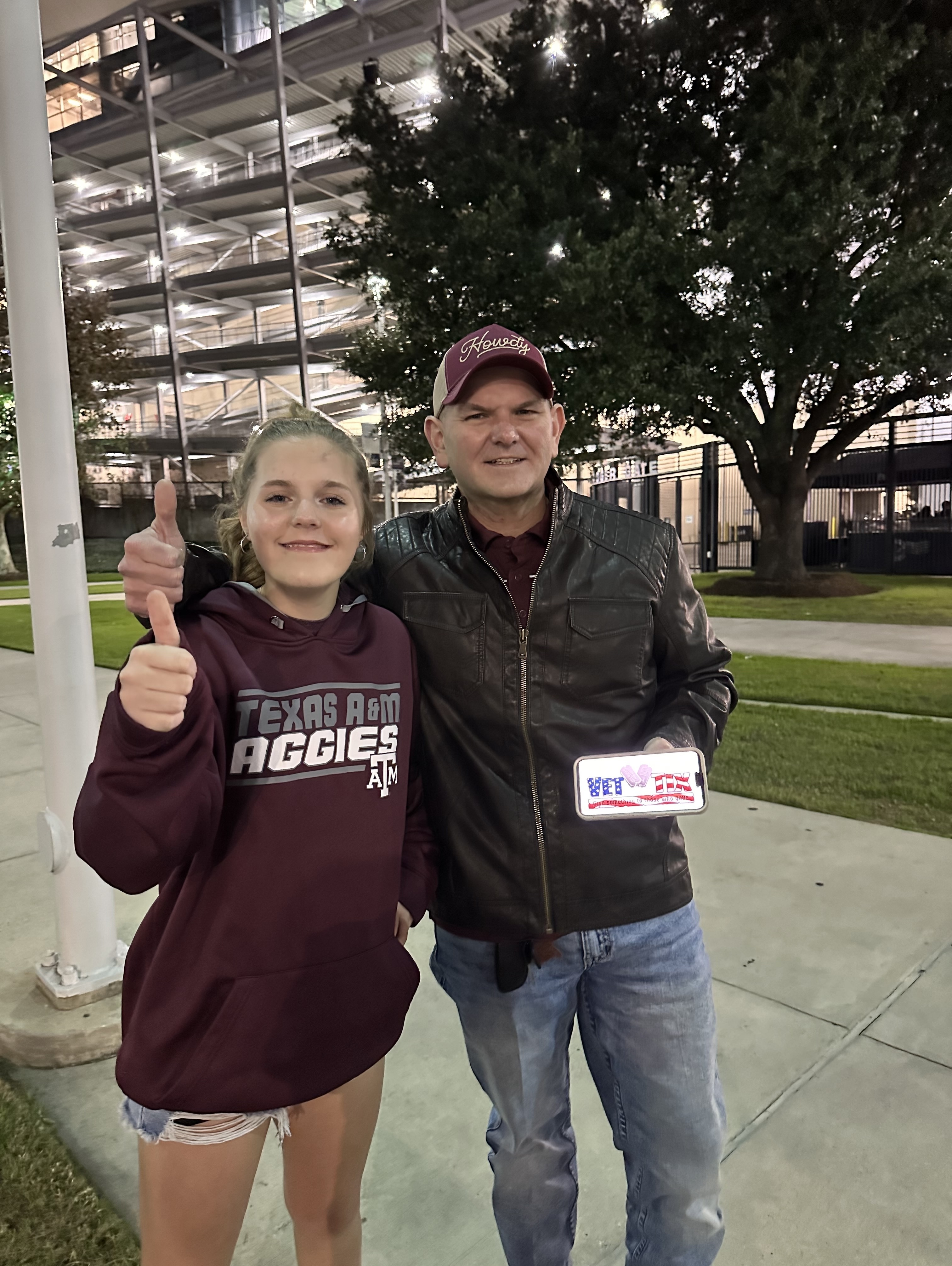 Huge ups to the donors for making this game happen for me and my friends. We had three veterans and my son in attendance. Dad and I both Aggies class of ‘79 and ‘18. Thanks, and Gig ‘Em!