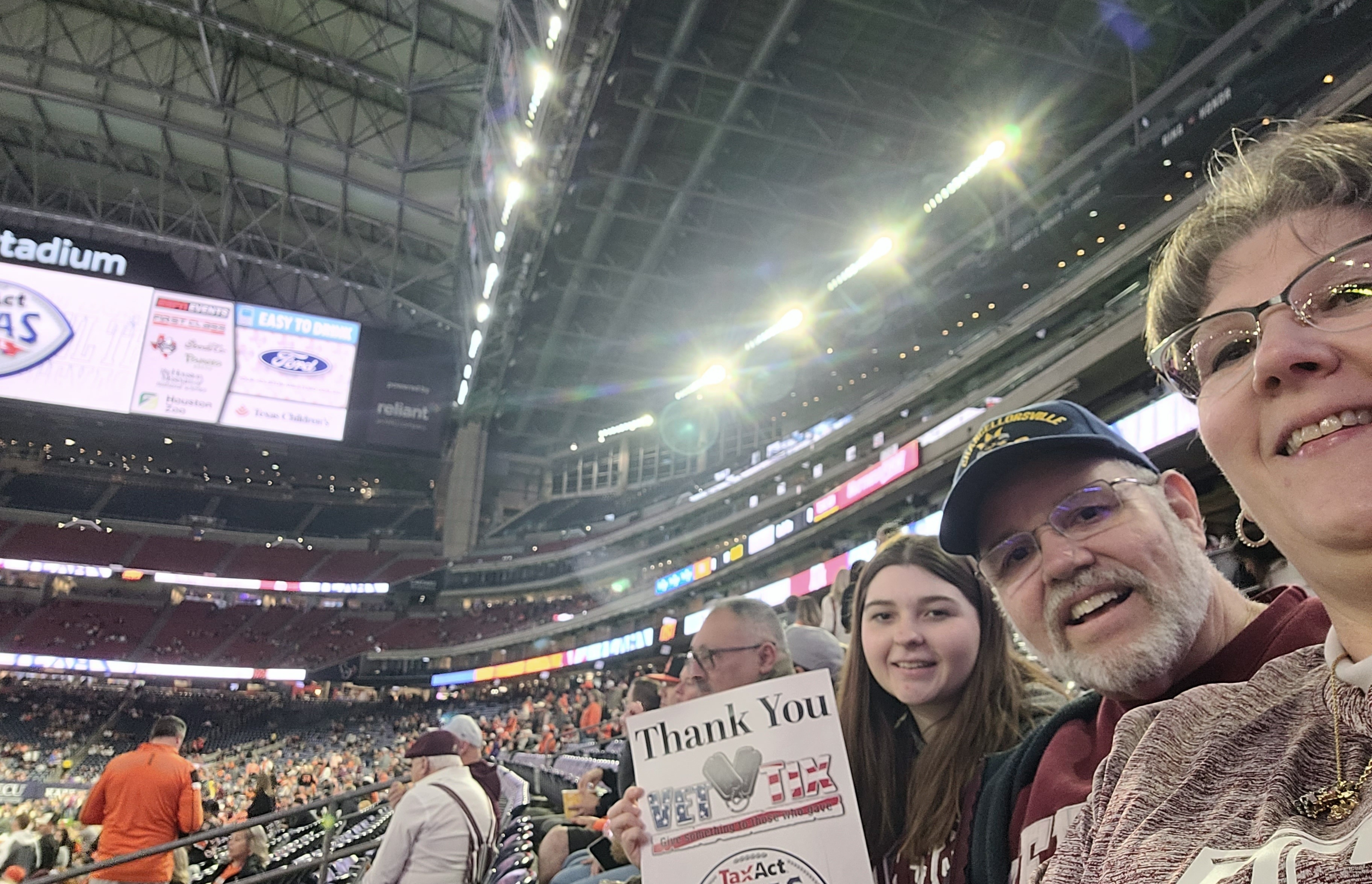 Thank you so much Tax Act Texas Bowl and Vet Tix for an awesome evening with my family and time to cheer on Texas A&M!