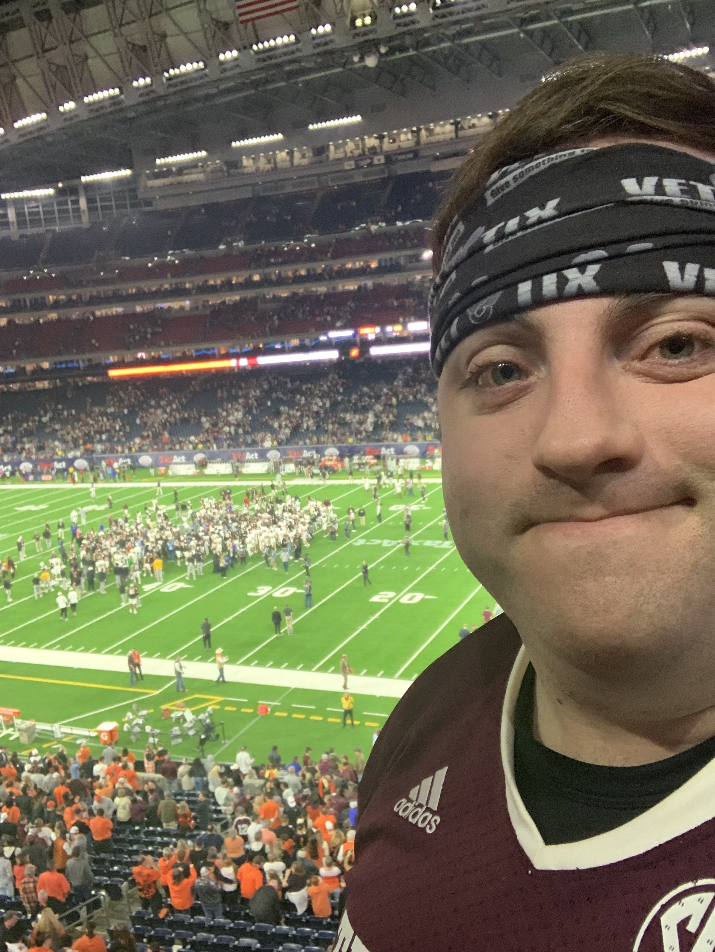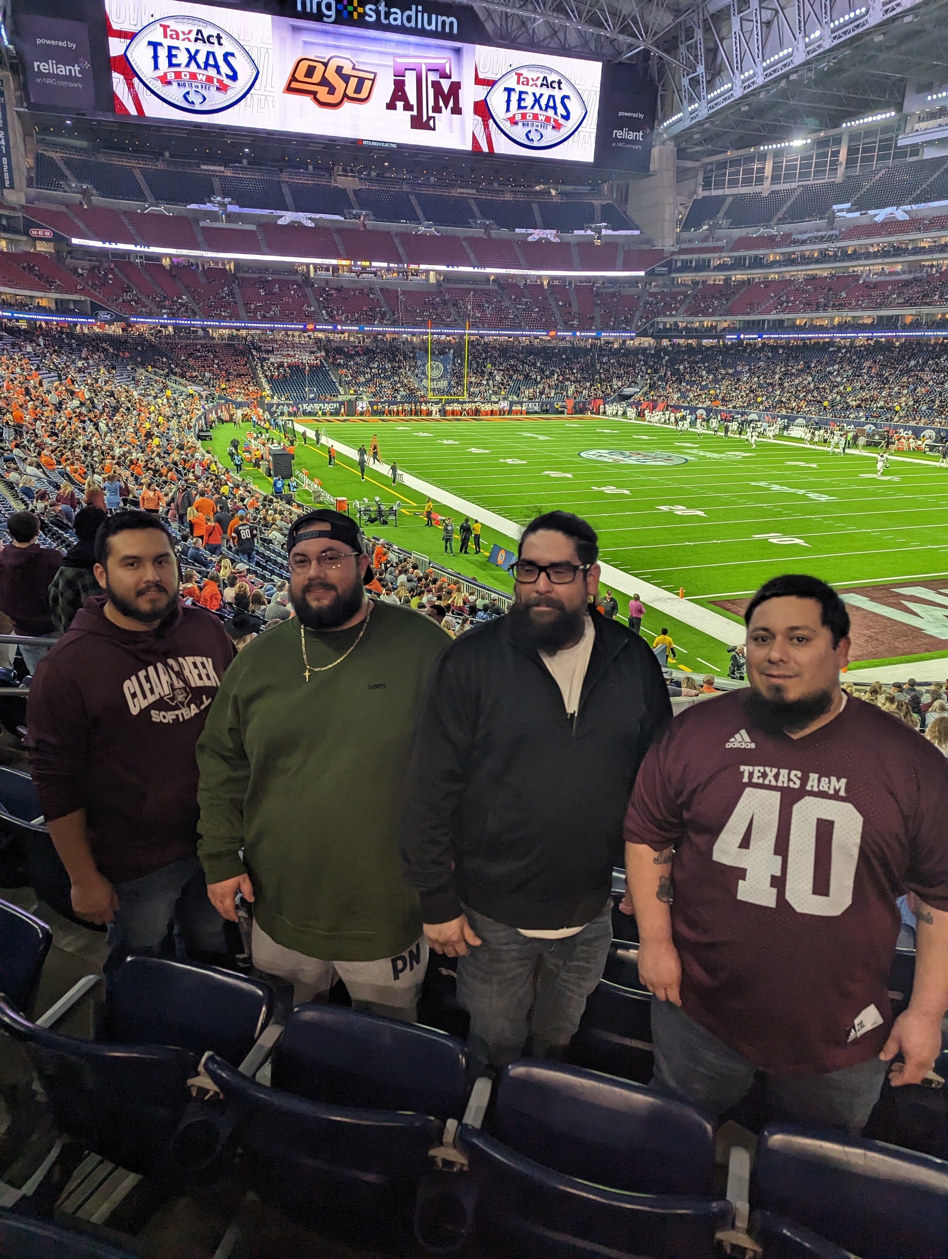 Thank you so incredibly much to Oklahoma State University and Lone Star Sports and Entertainment/Texas Bowl for the incredibly generous donation of tickets to the game. I had INCREDIBLE seats in the 300 Club level of NRG and, in all my experience going to sporting events, I can honestly say that seats donât get much better than that! Perfect view of the field! It was a back and forth game that ended up with the OSU Pokes making the Big 12 proud and coming away with a 31-23 victory! Despite the loss, itâs always incredible to be a part of a tradition like the Aggie War Hymn; itâs stuff like that that really makes me love college football. I canât wait to come back next year! Thank you again so incredibly much for the generous donation of tickets to the game and go pokes!