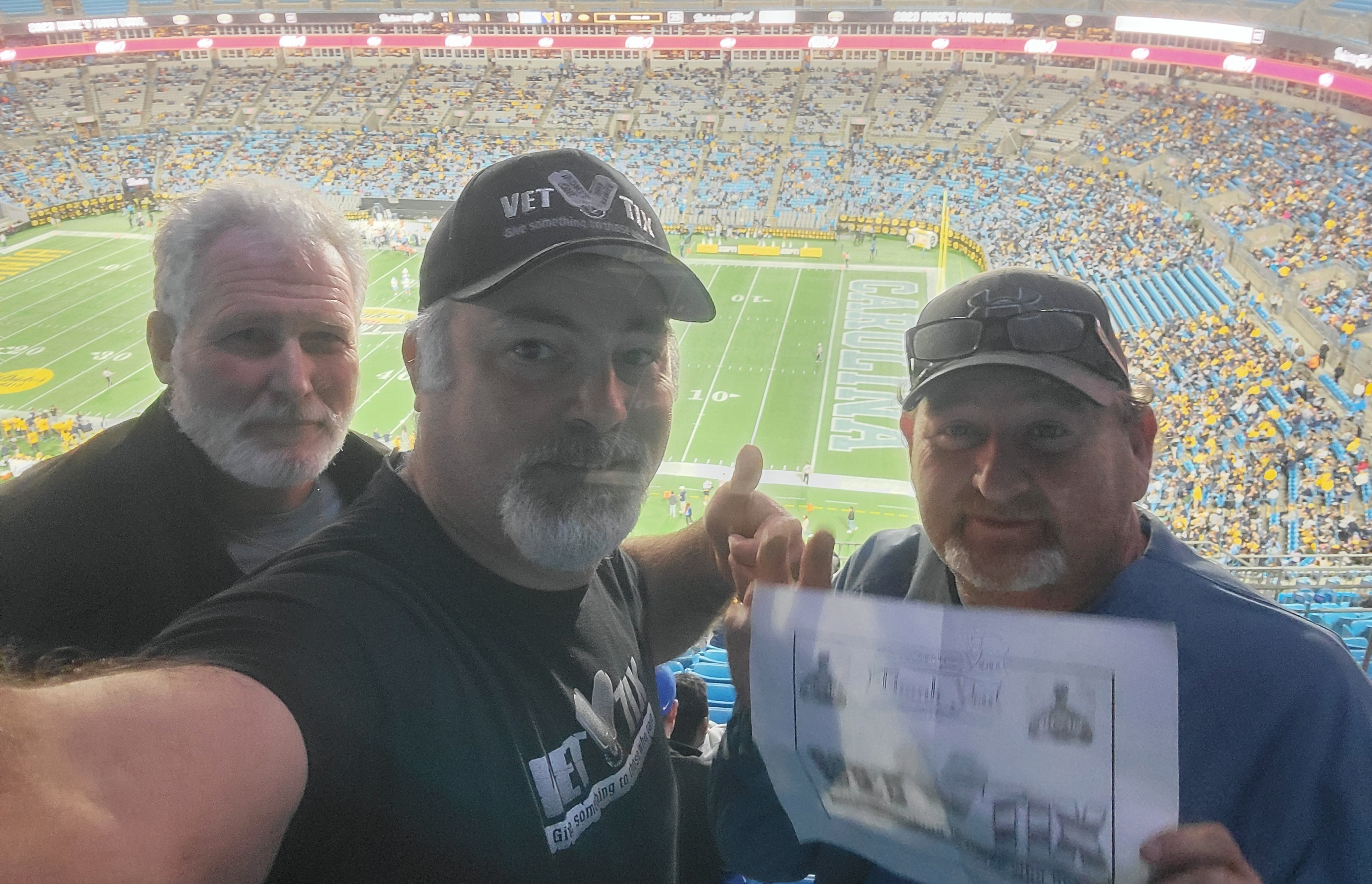 We had a wonderful time at the game. It is an extraordinary gift that you are providing to military veterans. It is with all my heart that I say thank you to the Charlotte Sprots Foundation and Vettix.org for providing us with a night of enjoyment attending The Duke's Mayo Bowl.