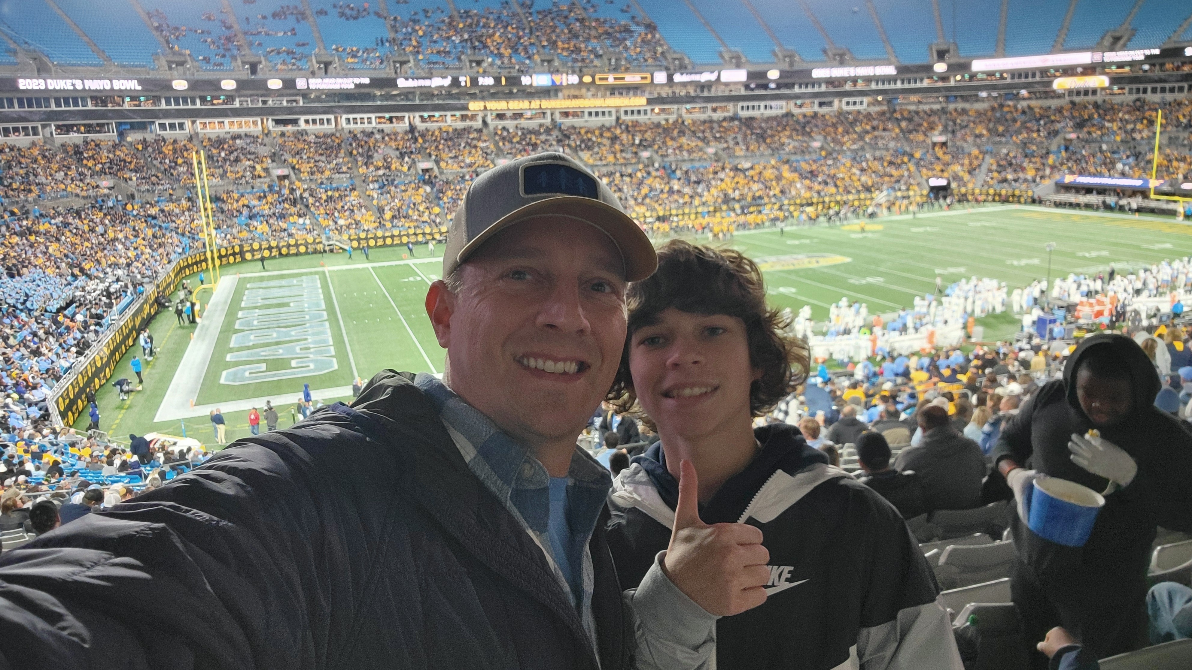 I cannot say thank you enough for the seats to watch WVU defeat UNC at the Duke's Mayo Bowl in Charlotte. I was able to take my nephew, a current WVU student, who was super appreciative. And I have to say, the seats were probably the best seats I have ever had to a football game. Thank you so very much.