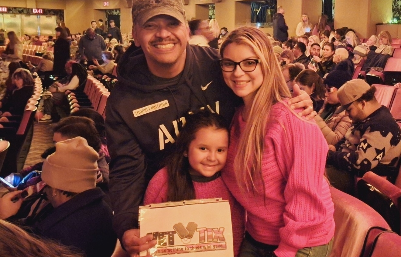 Happy New Year and thank you to The Madison Square Garden Company, The Radio City Rockettes and VetTix for allowing my family and I to continue our tradition of attending the Christmas Spectacular. We had an absolutely wonderful time and it would not have been possible without the donation of these tickets. My daughter's eyes lit up when we were entering Radio City Music Hall and she hasn't stopped talking about it...thank you so much!