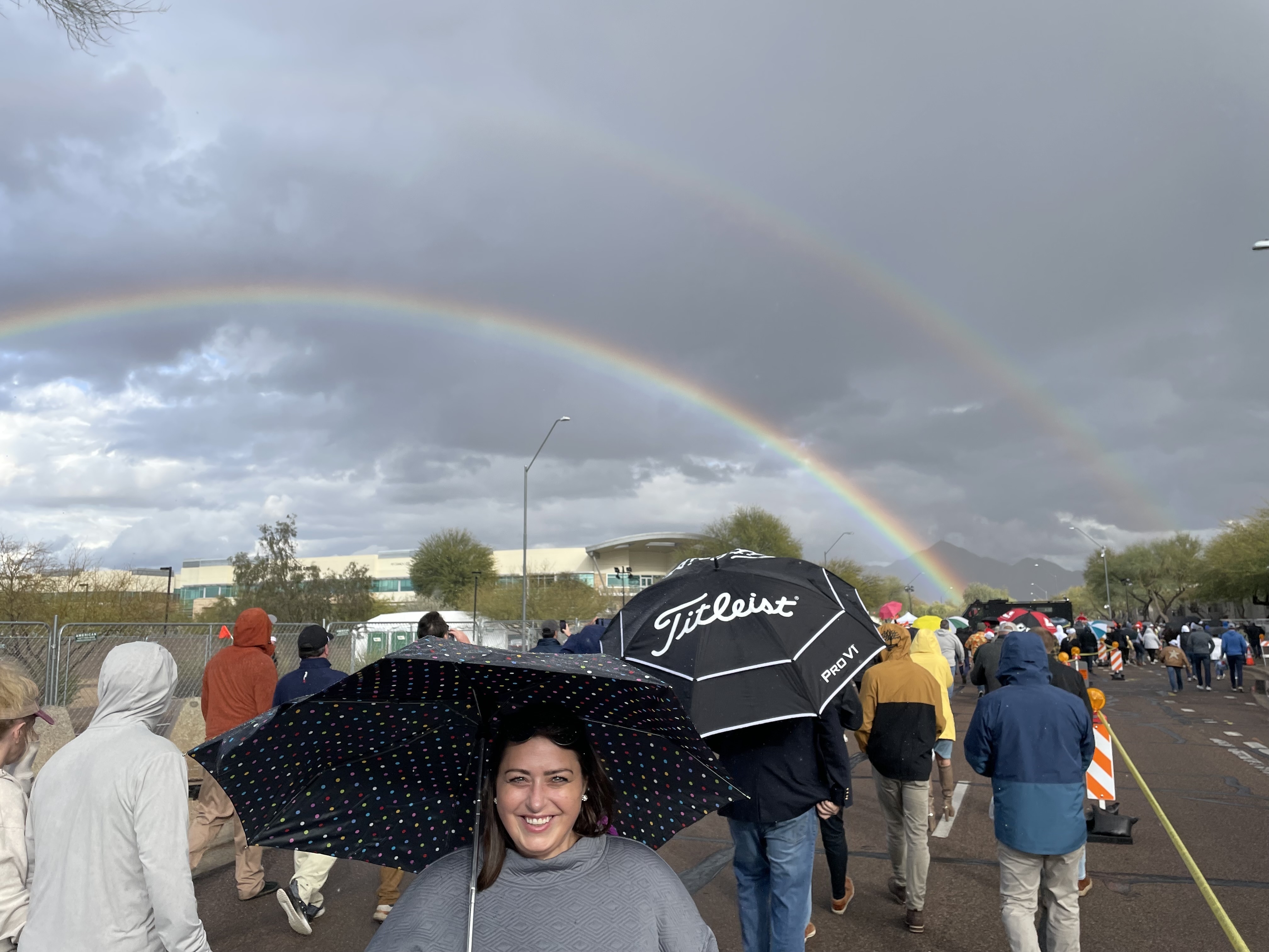 I went to the soggy, windy, terrifically fun Waste Management Phoenix Open for the opening round on Thursday. Amazing what the pros can do. Thanks so much for the opportunity to see the best in the world up close.