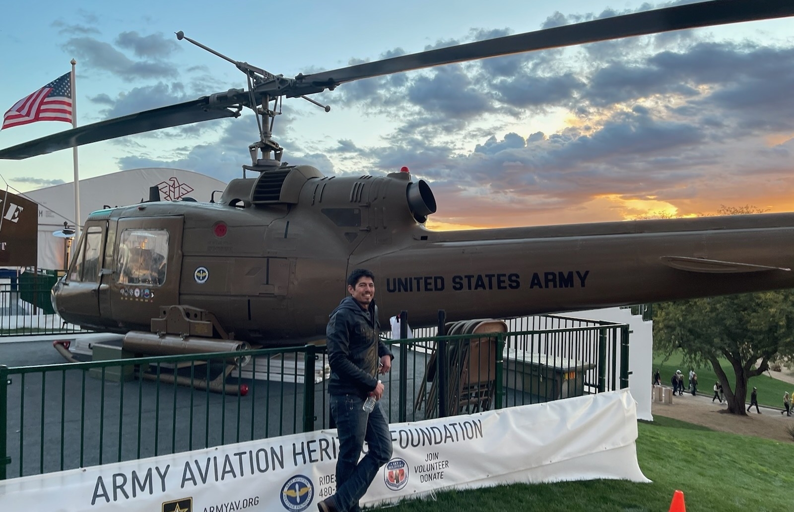 Thanks for the opportunity to visit the Phoenix open! Here's a picture next to some of the military aircraft that was on display.