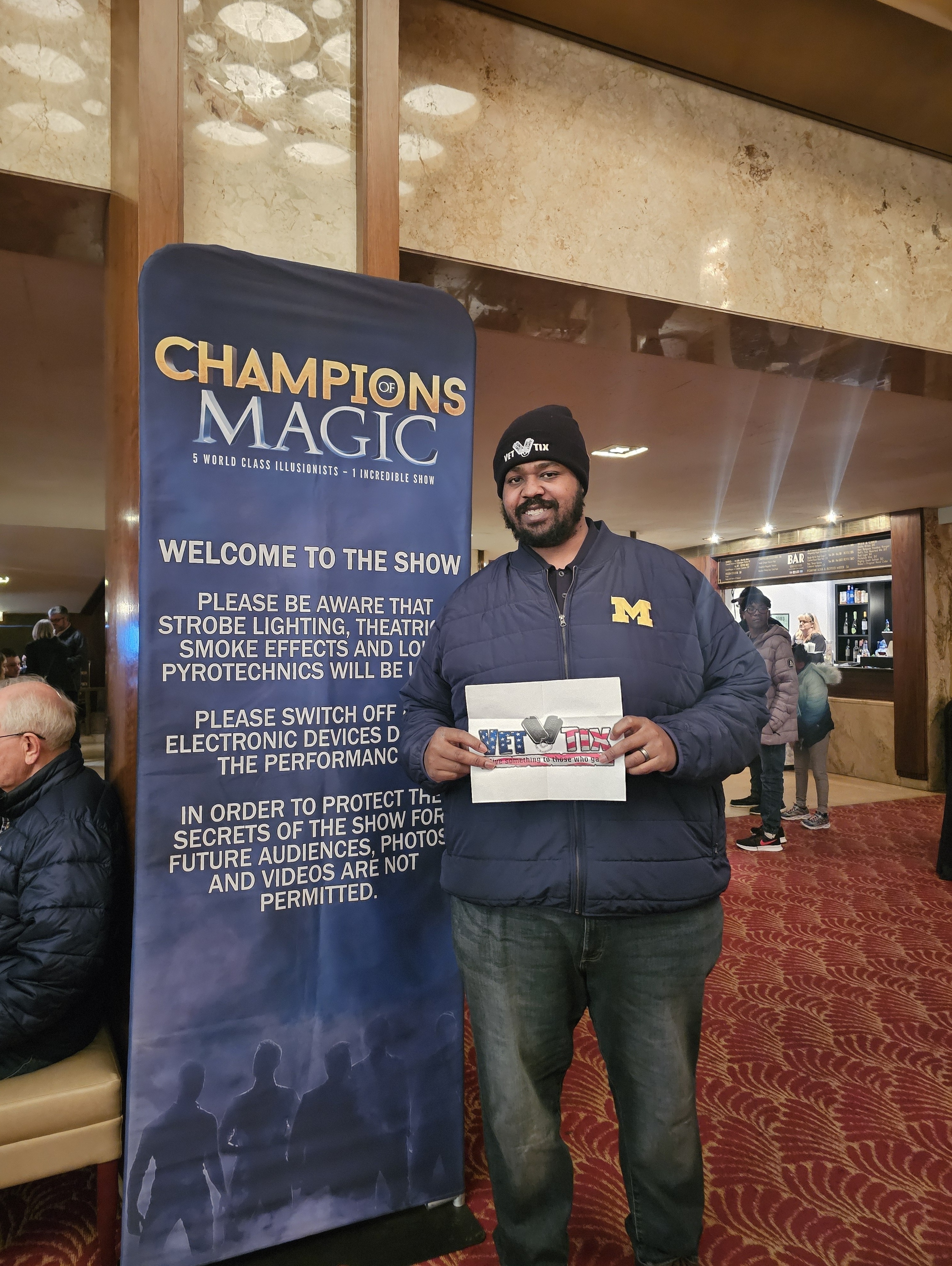The Champions of Magic show was astonishing! I took my wife and 2 of my grandchildren to the performance and we were in awe of each of their mind blowing performances. What a great show! Thank you for the opportunity to attend this event, it was extremely entertaining. I want to “Thank” the Champions of Magic for the donations to make this all possible and also to Vet Tix for everything they do to make this happen- Thank You!
