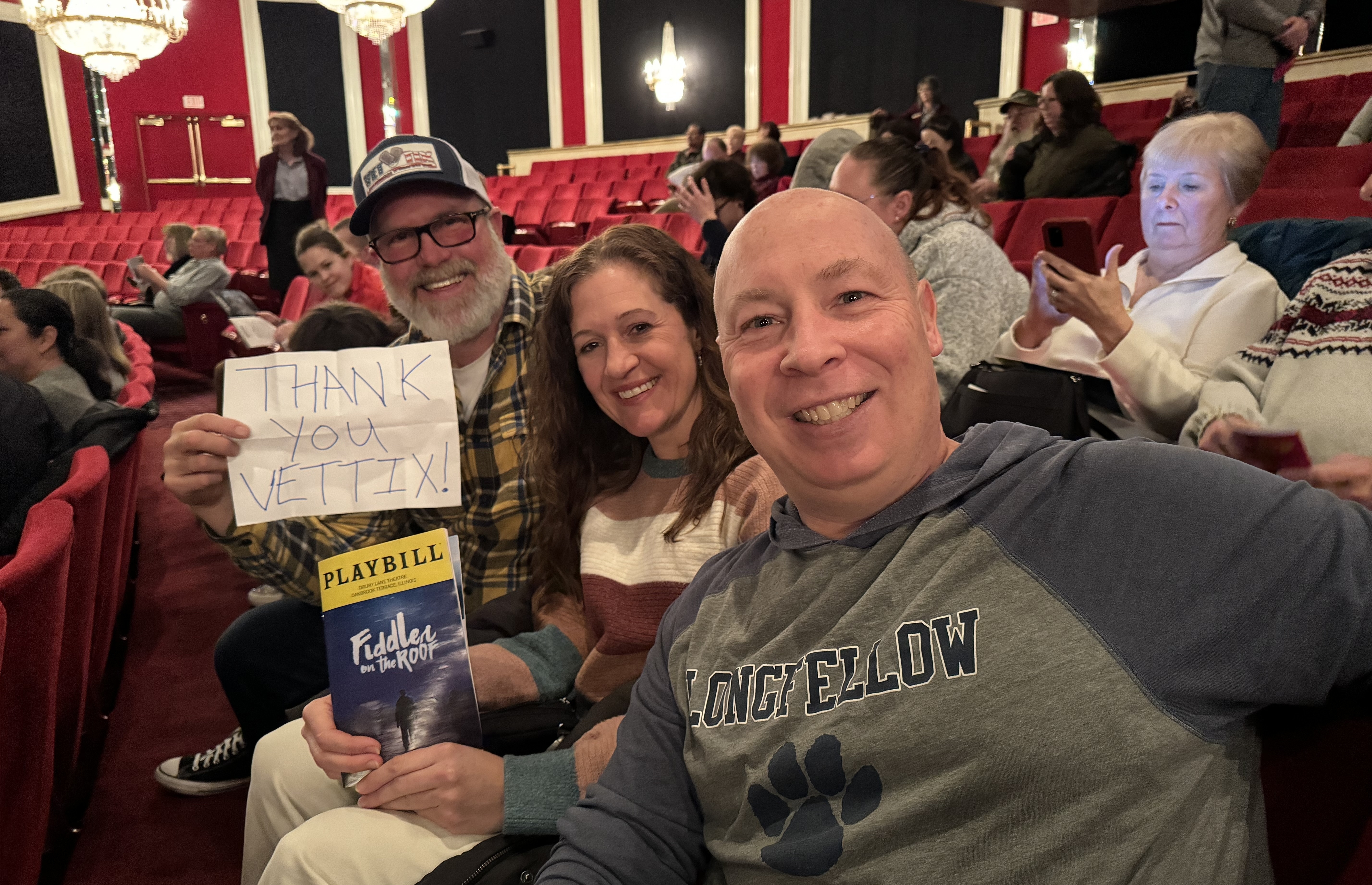Thank you Drury Lane and VetTix. We had a wonderful time. We love Drury Lane and the productions are always top notch. Fiddler on the Roof was an amazing show and the cast was even more amazing.