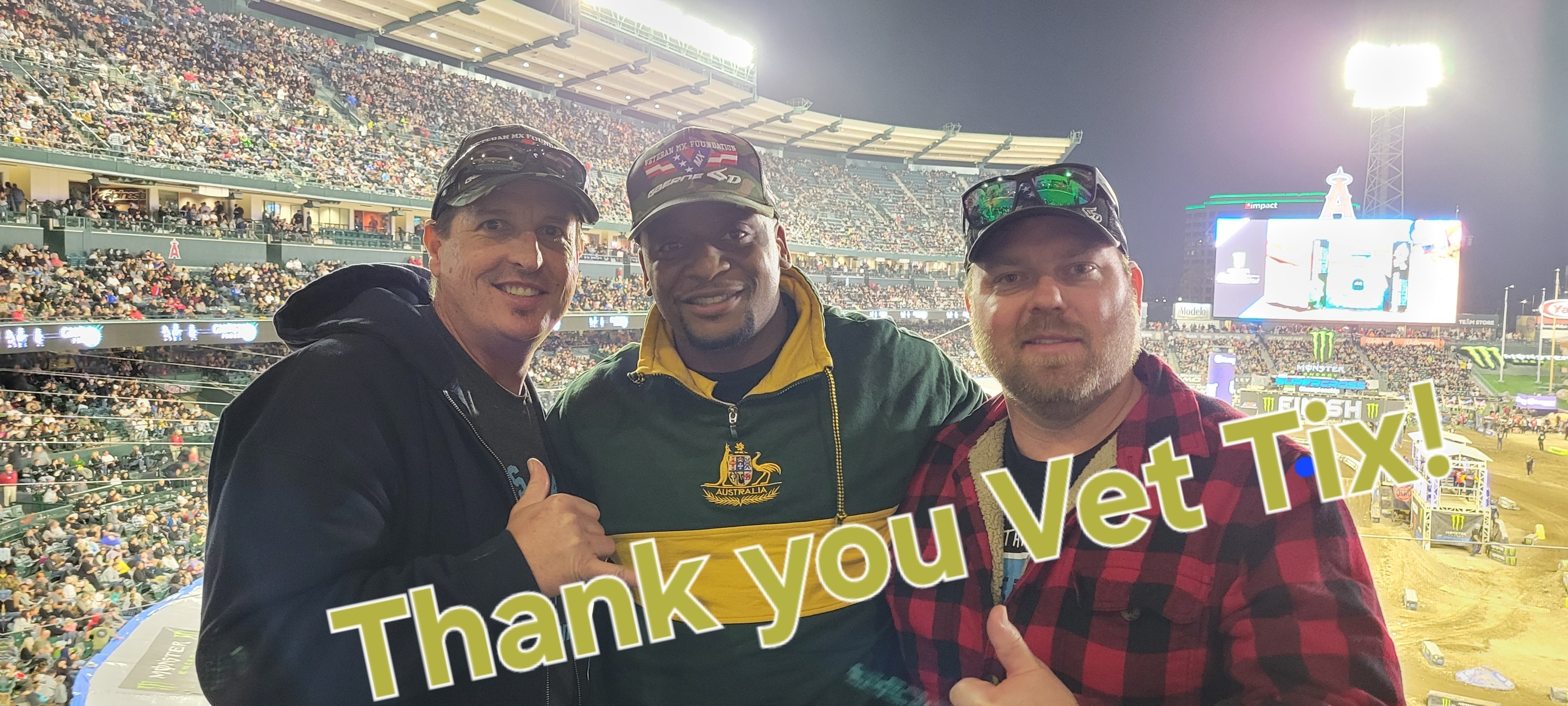 Thank you for the tickets to Supercross! I took 2 buddies I served in the Marines with. We had a blast getting together. First time in over 10 years.