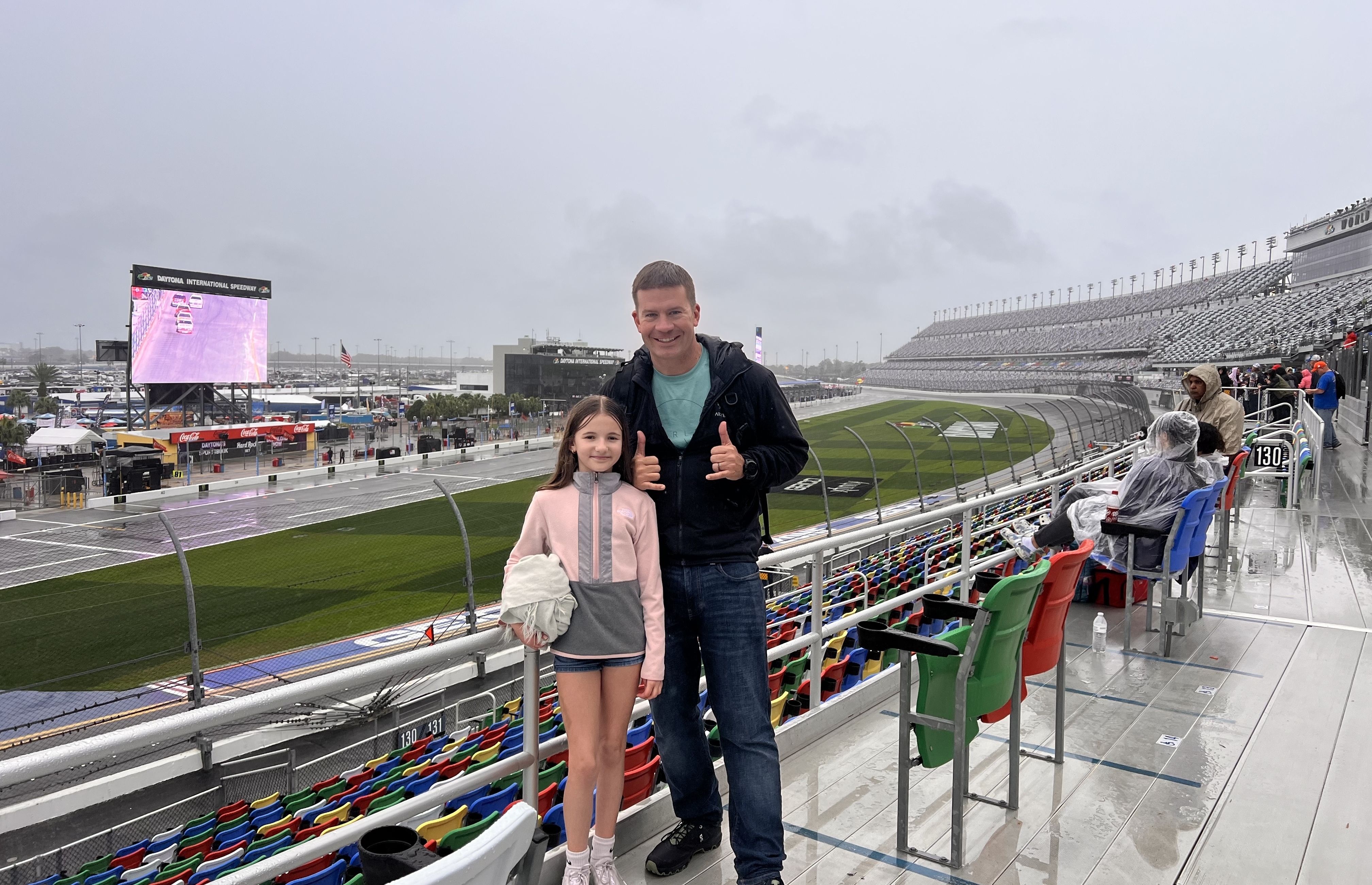 We were so excited to see our first NASCAR race. We made the trip to Daytona, but after arriving found out the race had been postponed. We were happy just to see the tracks. It made us look forward to seeing a race in the future.
