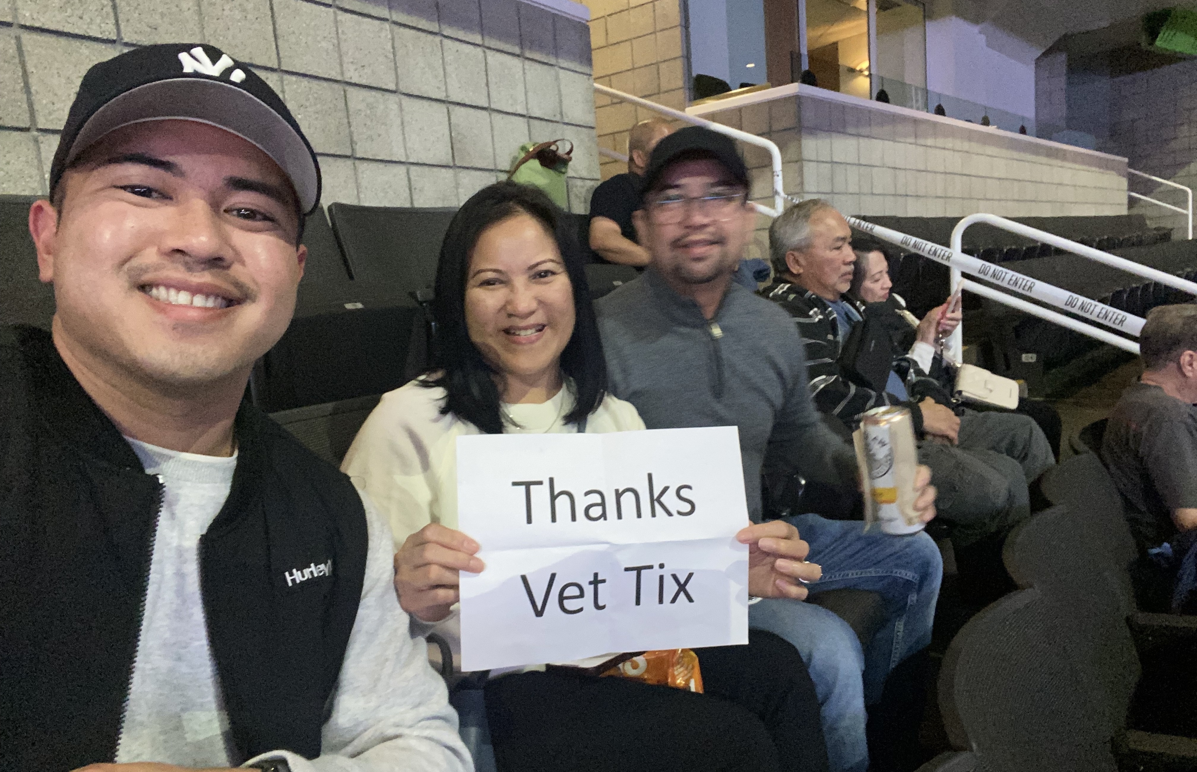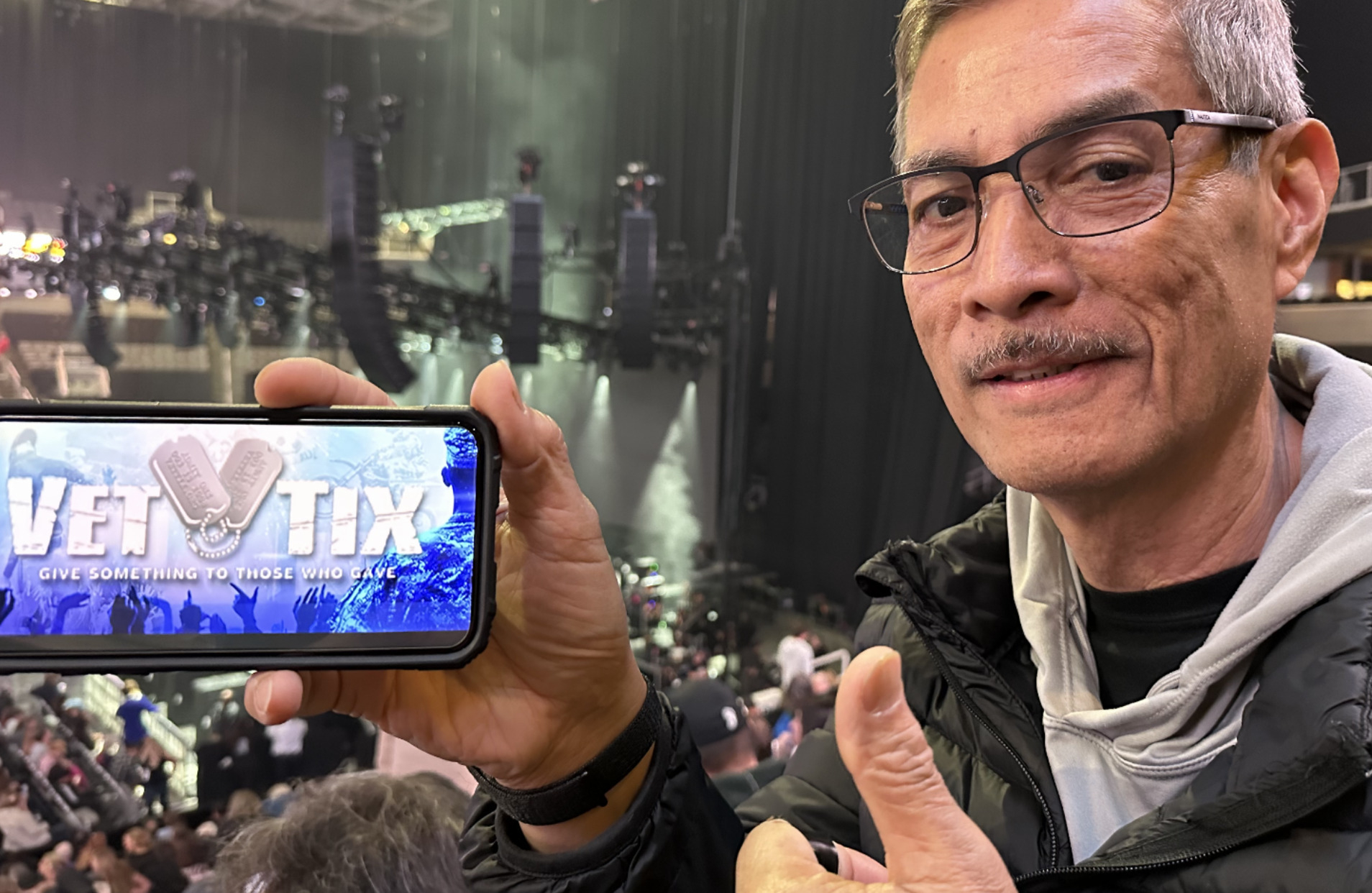 Dear VetTix, I appreciate you providing me the opportunity to take my parents to see Bryan Adams live. They’ve been wanting to see him live and I’m glad we could attend this show. This was my first time using VetTix to redeem tickets and the process to receive the tickets was very easy. I liked how our seating section in the show was with other veterans. The VetTix sign in my picture was actually borrowed from another guest in attendance. Overall, I had a great experience. Sharing this moment with my parents and other veterans in attendance made this a memorable show. Thank you VetTix!