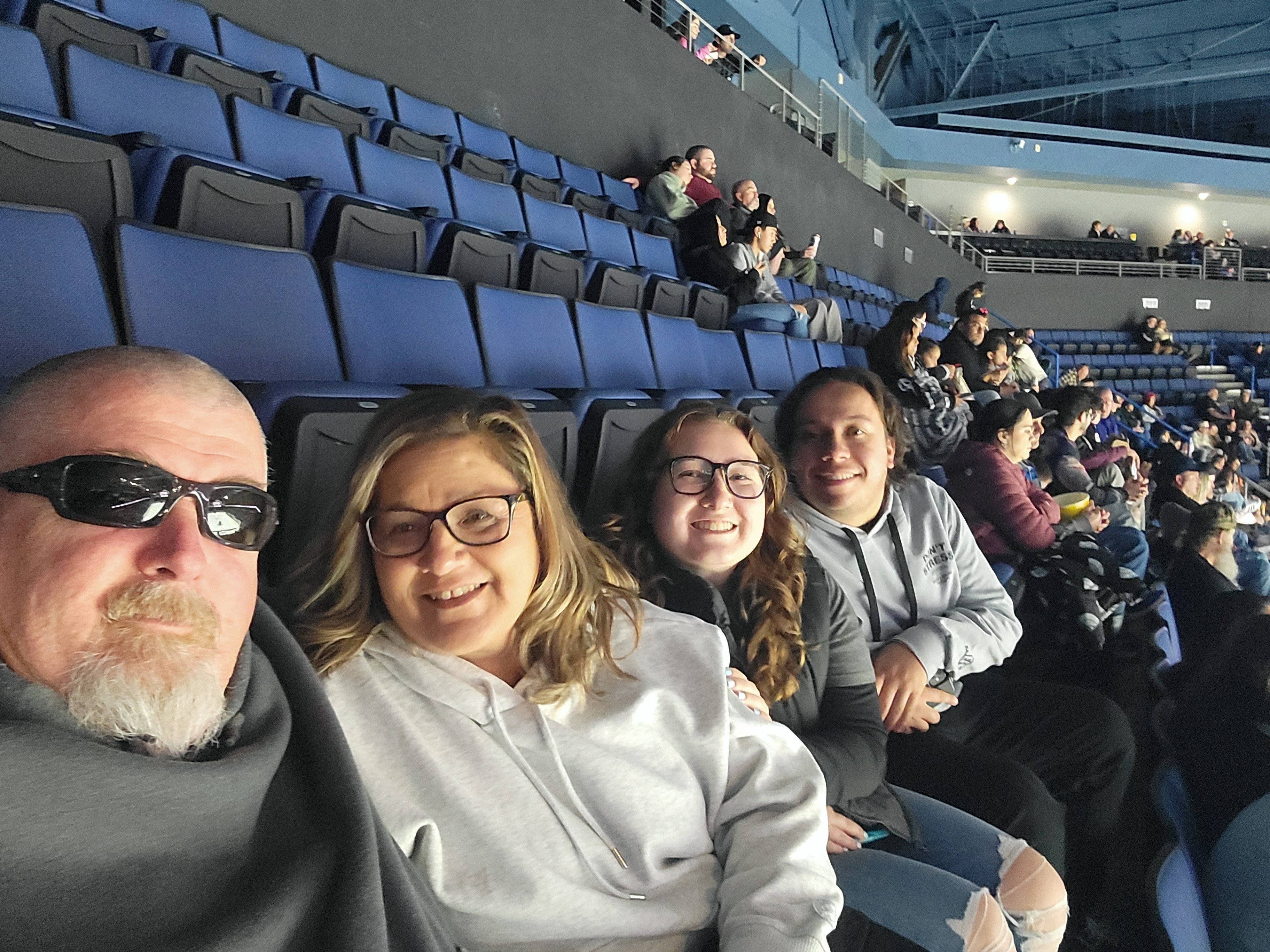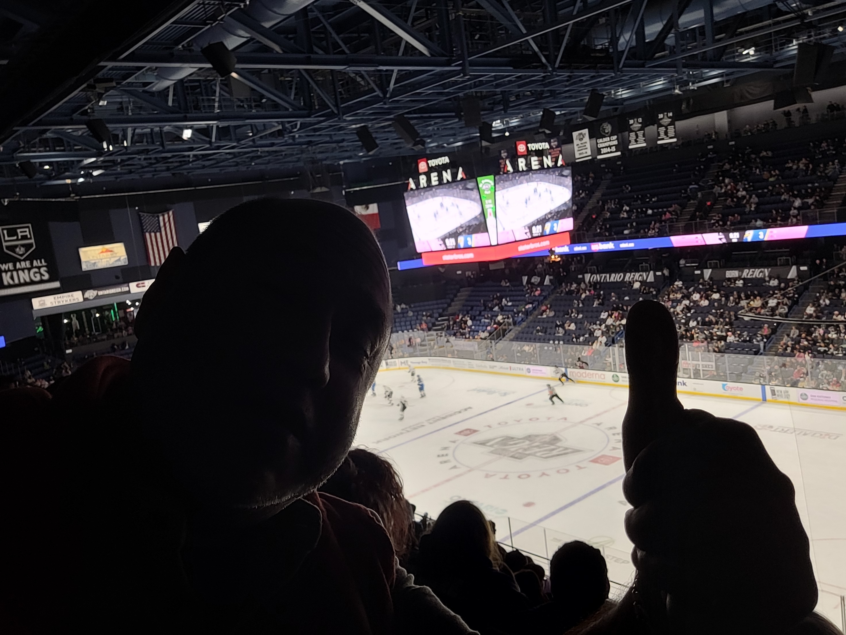 Thank you to the Ontario Reign organization for the tickets. We invited our son's friend for his first hockey game he had a blast and we even made it on the big screen.