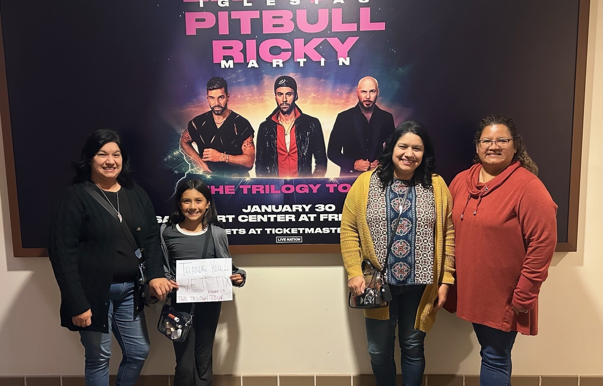 Thank you Vet Tix, We had a blast at the concert. Pit Bull, Enrique Iglesias, and Ricky Martin put on a good show!!!
