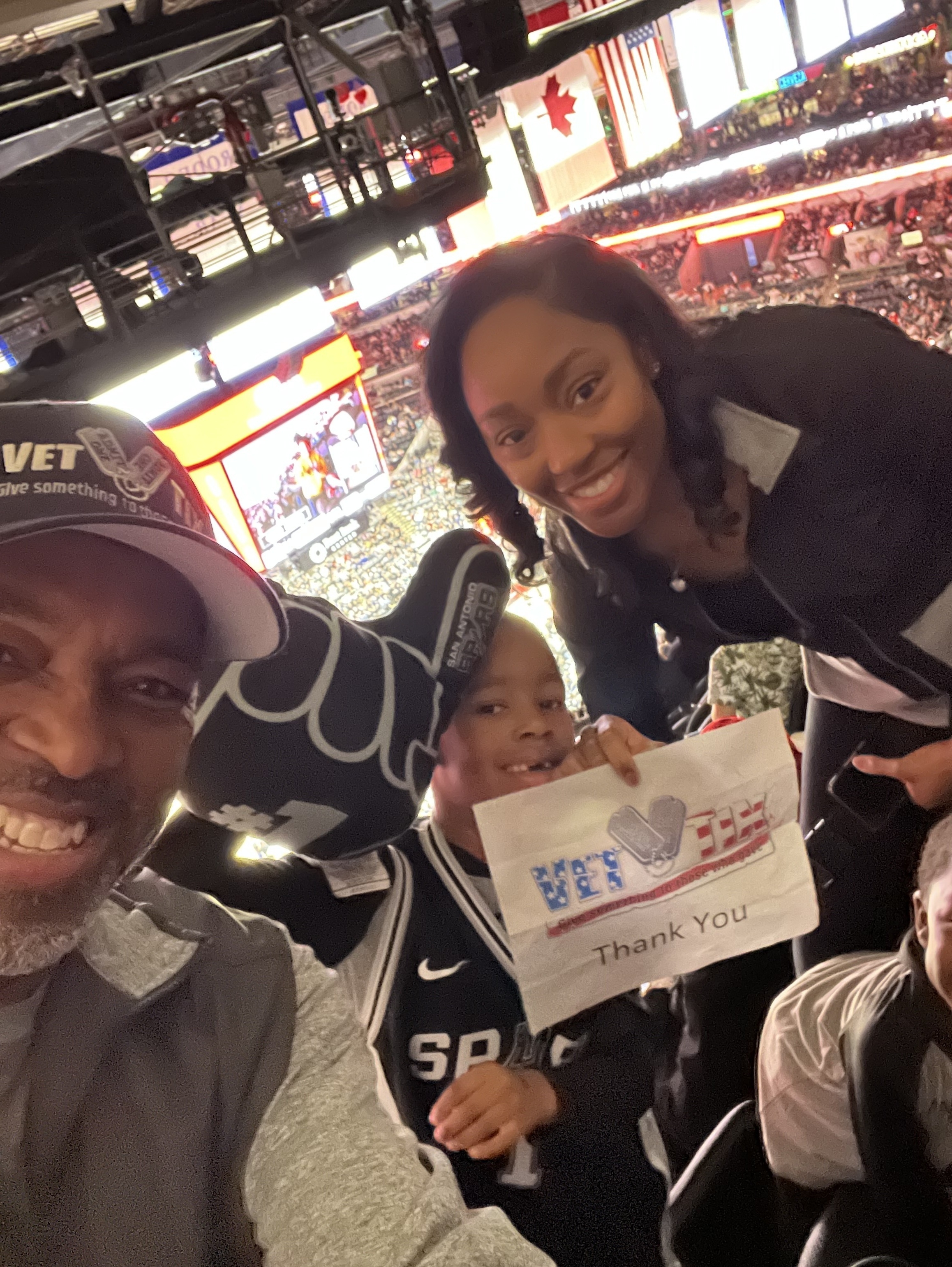 Thank you San Antonio Spurs. We had so much fun at the game. Thank you for providing an outlet for veterans like me to forget bad days and enjoy cheering our favorite team.