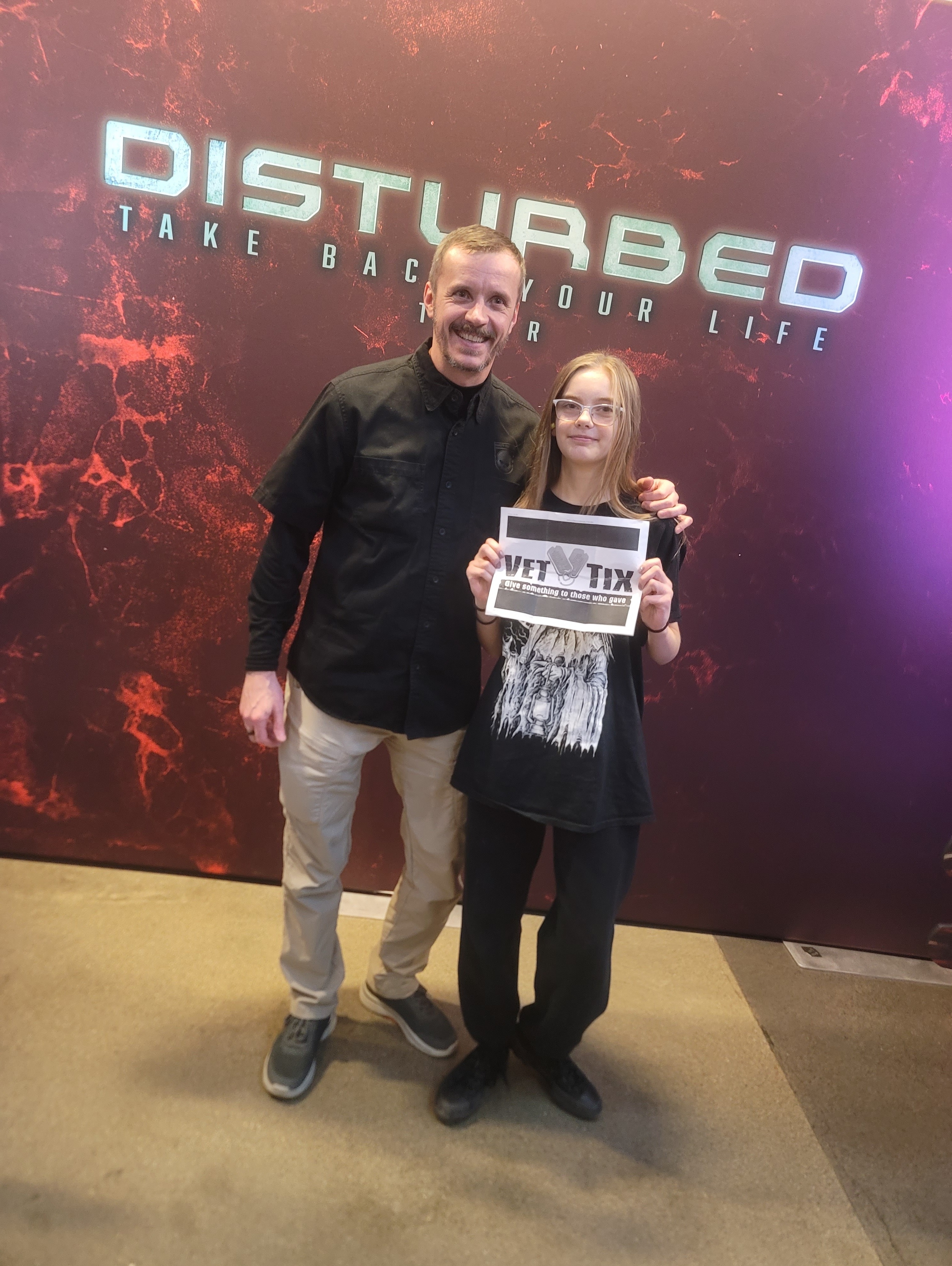 Thank you so much! That was one of the best concerts I’ve been to. Disturbed did a really great acknowledgement to Veterans, it was awesome. We ran into other VetTix ticket holders too, you can see them in the background. :)