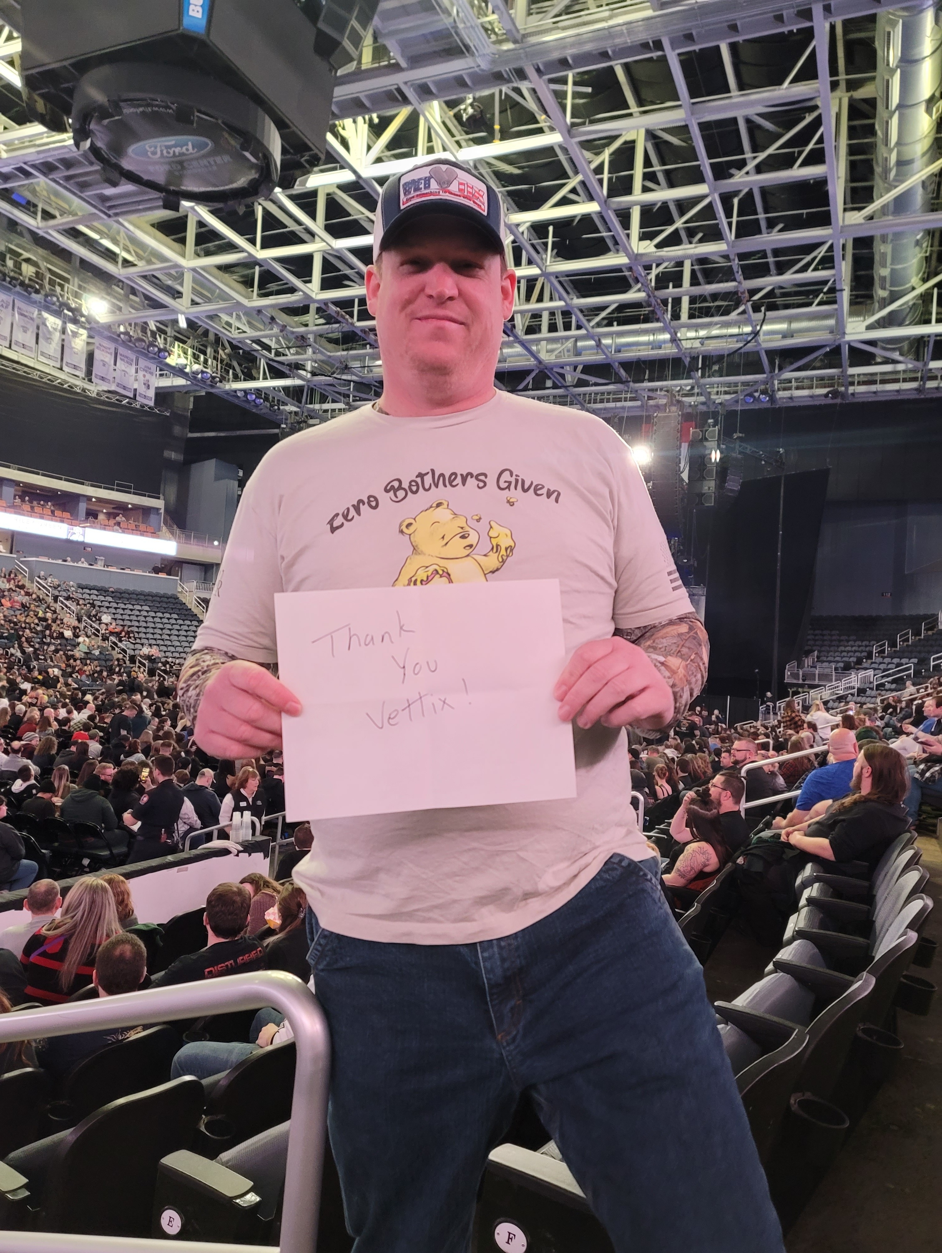 Thanks again for the Disturbed tickets we all had a good time. Can always count on Vet Tix for great shows and sporting events.