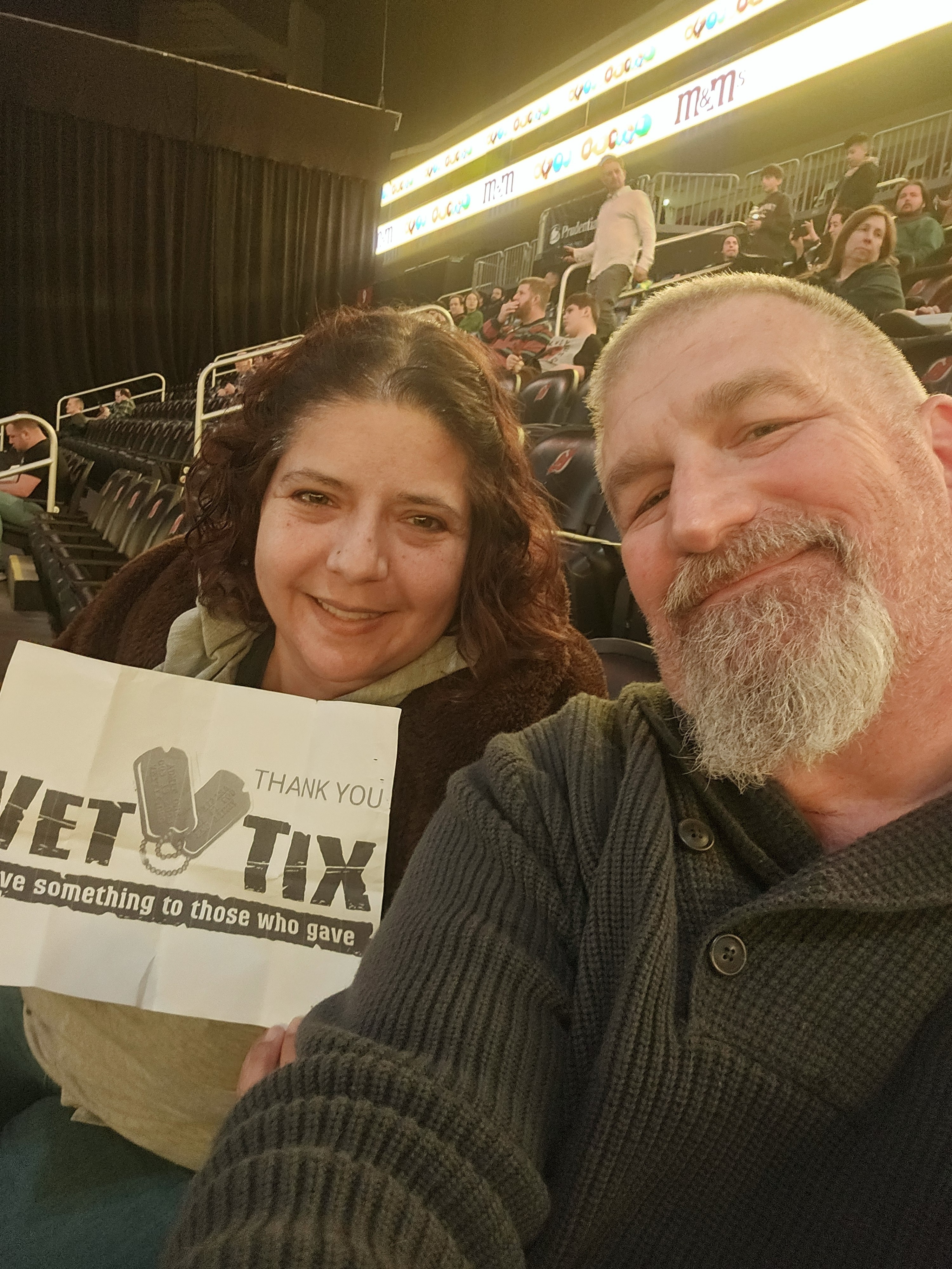 Thank you to the New Jersey Devils and the Prudential Center for the tickets. Your venue is amazing and the show was fun. As a veteran I am appreciative of your contribution. Thank you