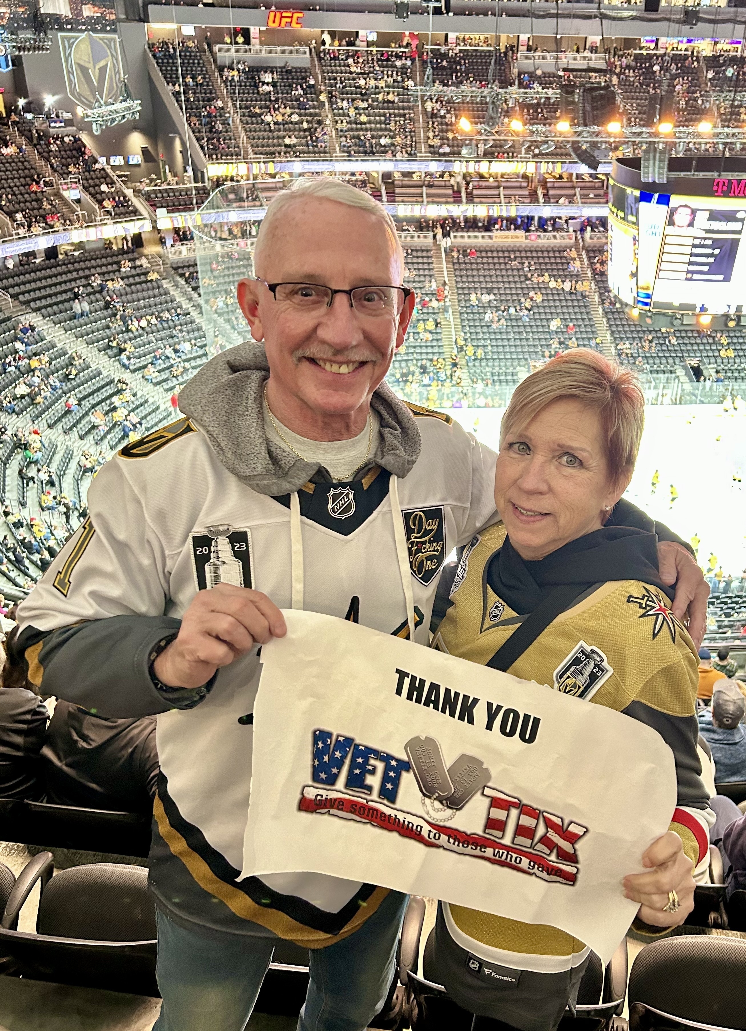 My wife and I want to thank you for the pair of hockey tickets we received via VETTIX. We wouldn’t have been able to attend the game if it wasn’t for your kindness and generosity. We’re huge VGK hockey fans and we really enjoyed the game live and in person.