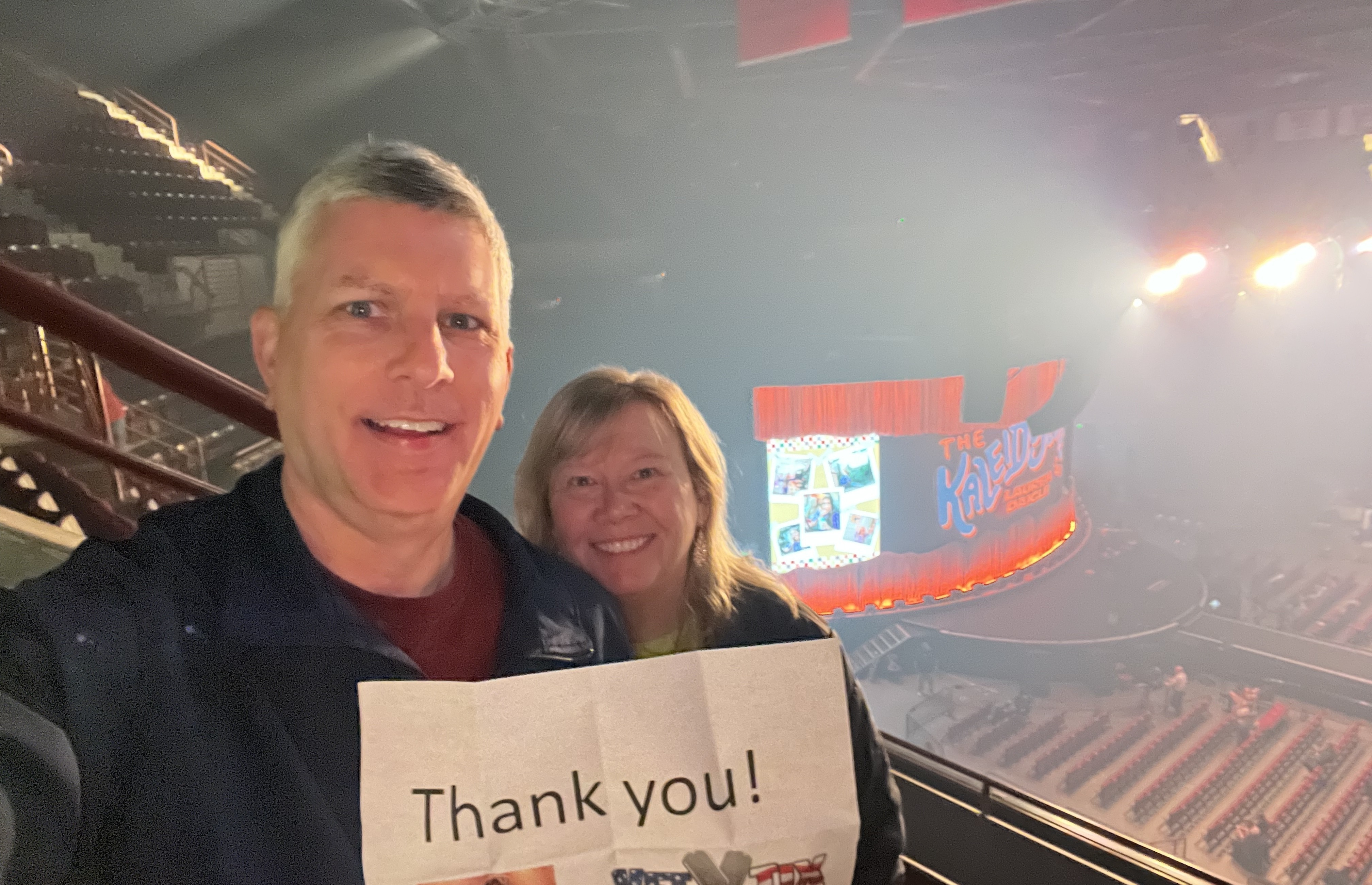Thank you AEG for providing my wife and me this wonderful evening together! We would not have attended this event without your generosity!